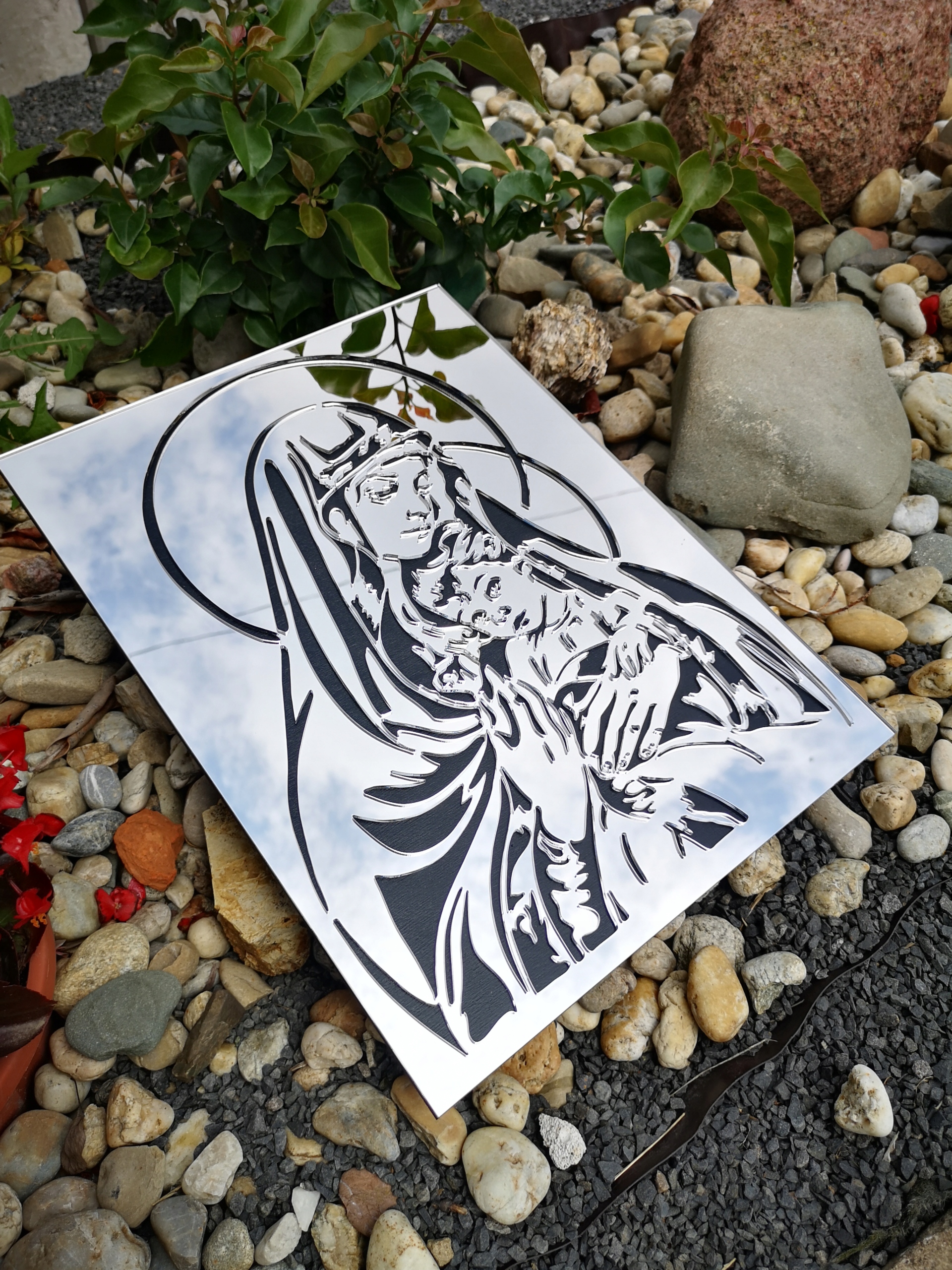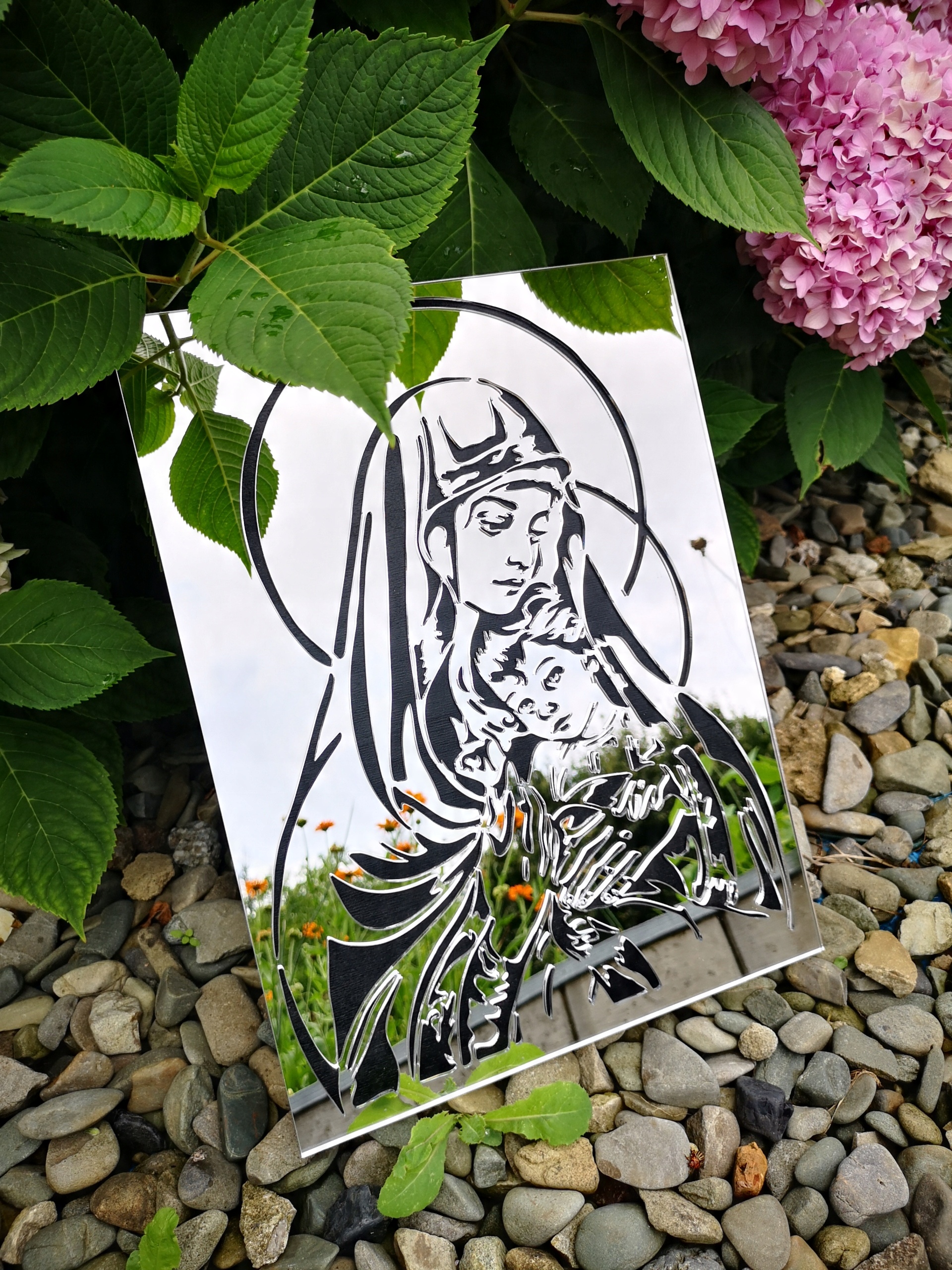 Богоматерь с Младенцем из зеркального оргстекла, размер 30х40 см