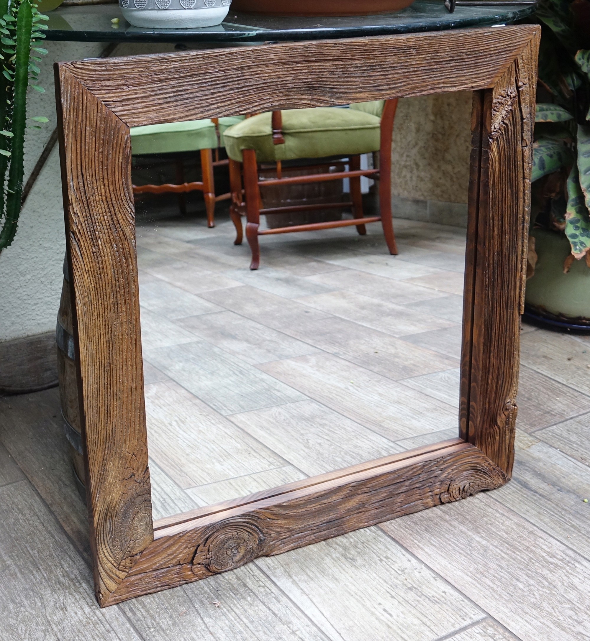 Зеркало DEF-LOFT лофт, старые доски 60х60см, сучки ручной работы