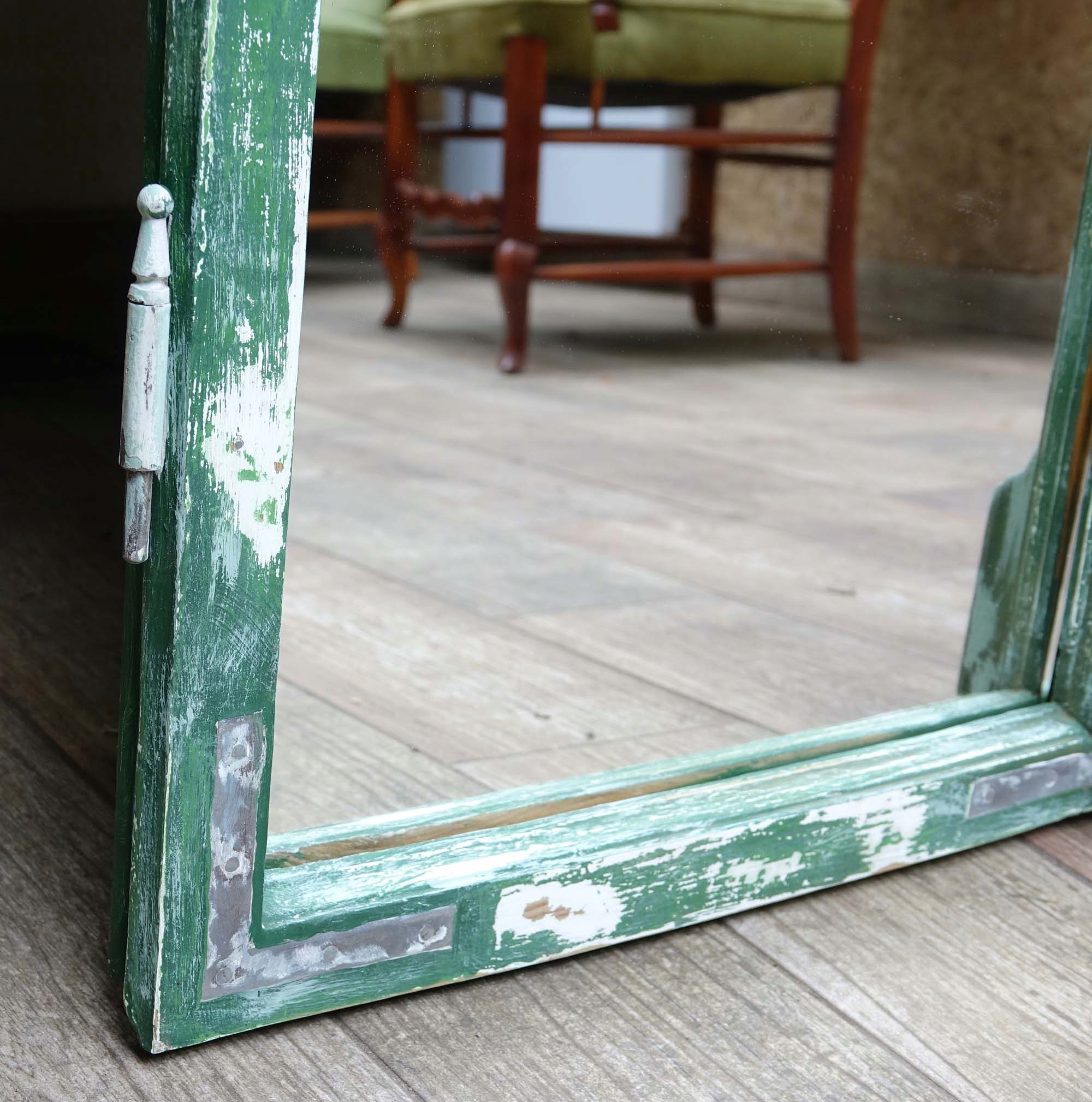 DEF-LOFT Зеркало лофт старое деревянное окно зеленое потертое 116x55 см