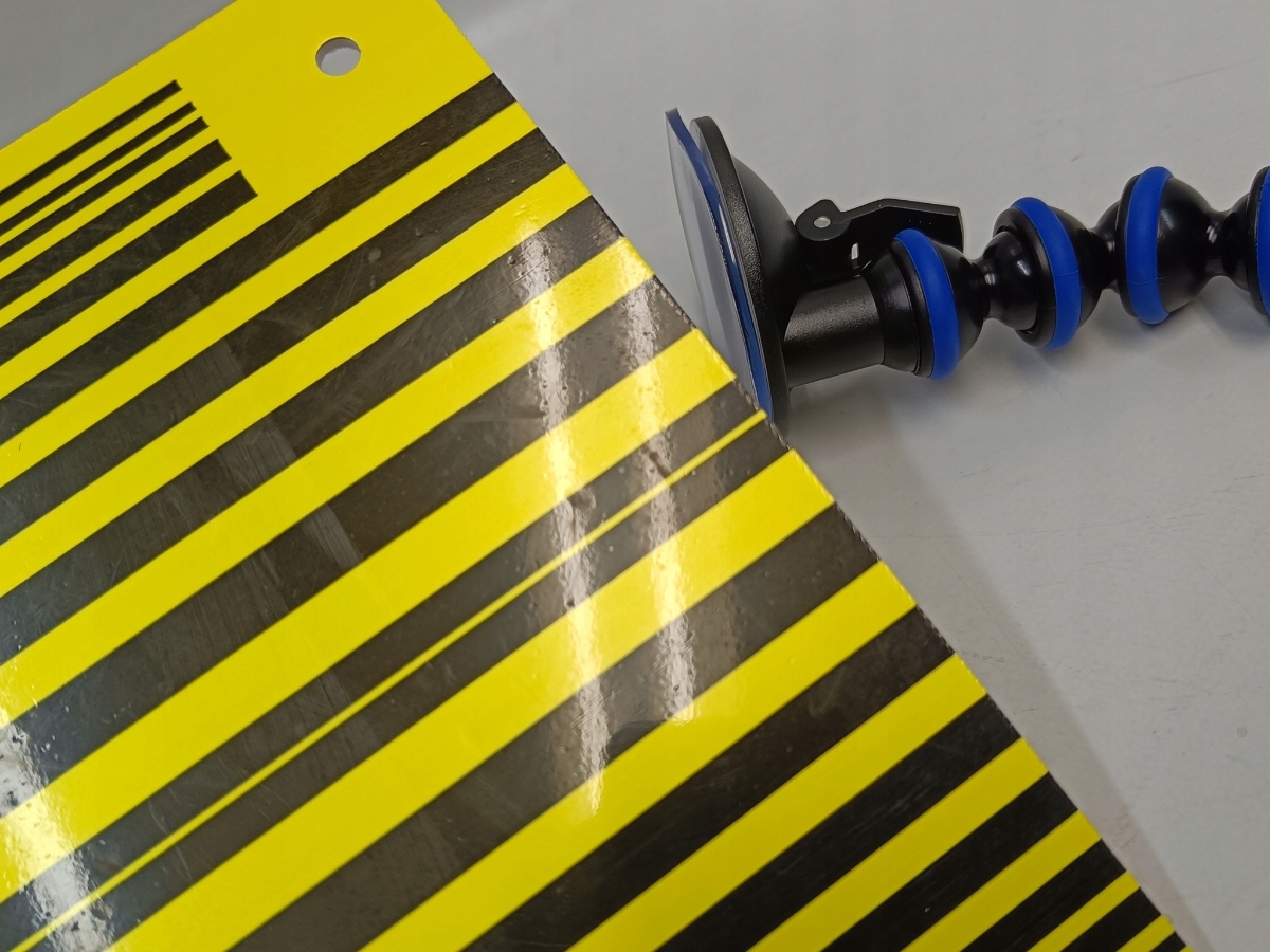 Благодаря свободно регулируемой гибкой шейке с присоской чашка, отражатель можно разместить рядом с вмятиной, а падающий свет отражает полосы на краске.