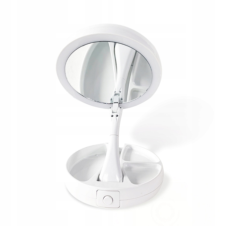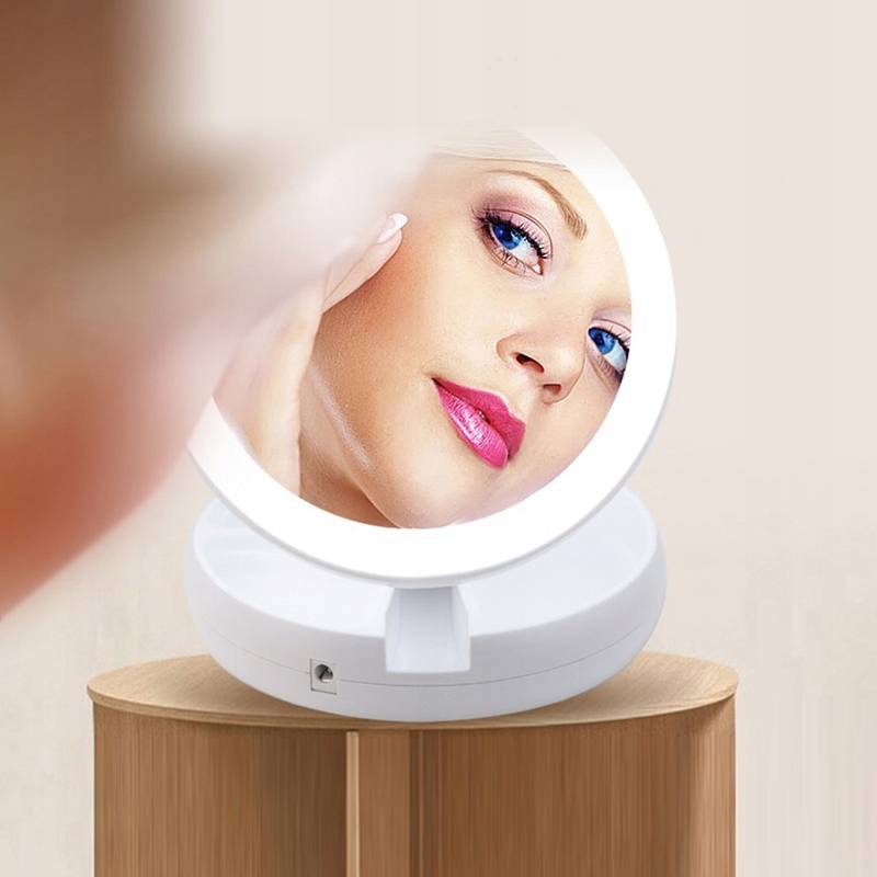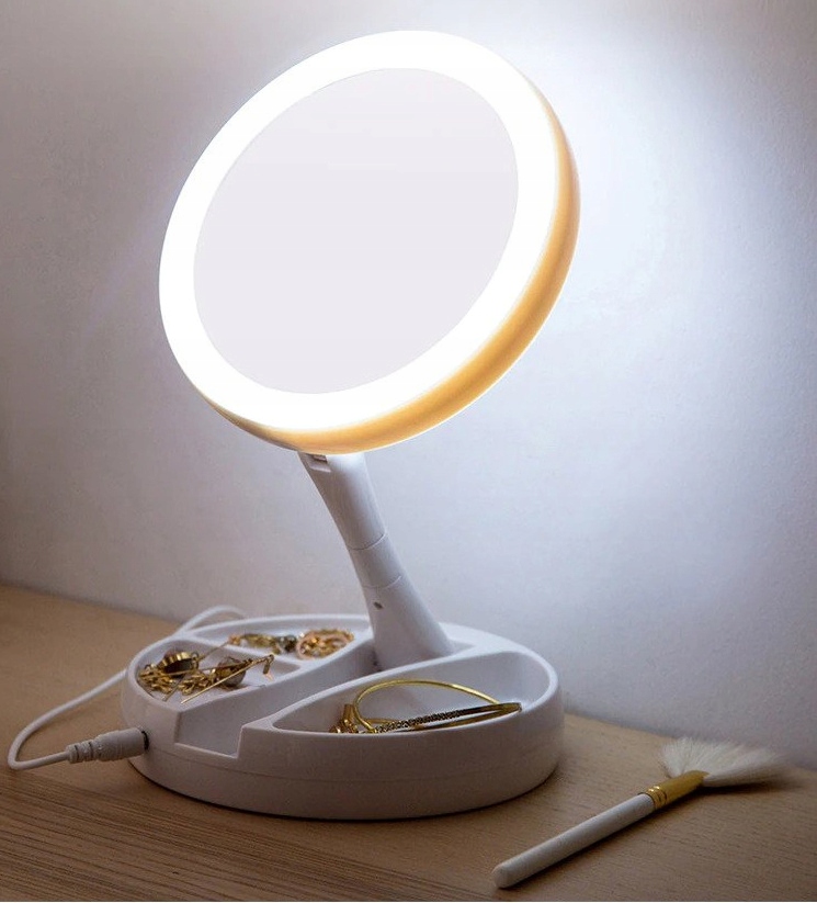 Это главное преимущество изделия. Благодаря свету мы можем лучше видеть свое лицо, что облегчает нанесение макияжа или надевание контактных линз. Чтобы их включить, нажмите кнопку, расположенную на основании зеркала.