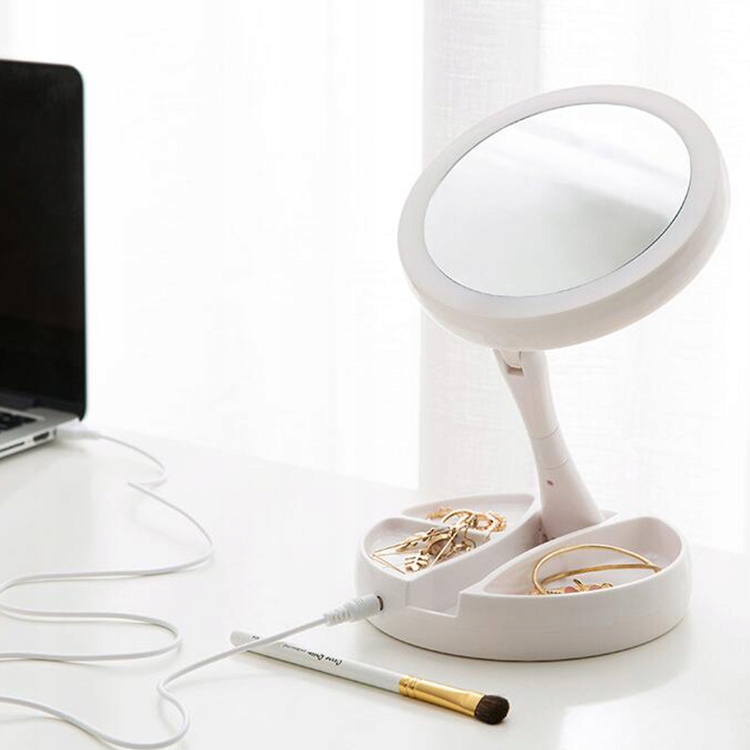 Зеркало можно вращать, с одной стороны есть зеркало, показывающее одежда в нормальном состоянии, а на другой изображение увеличено в десять раз.