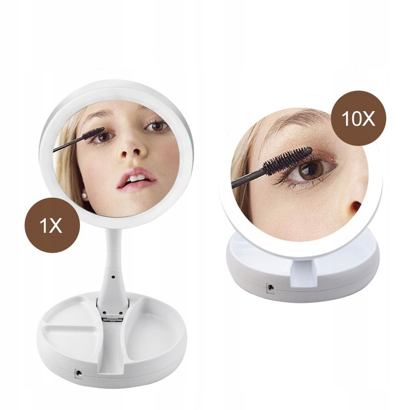 Зеркало можно вращать, с одной стороны находится зеркало, показывающее изображение в нормальном состоянии, а с другой стороны есть изображение, увеличенное в десять раз.