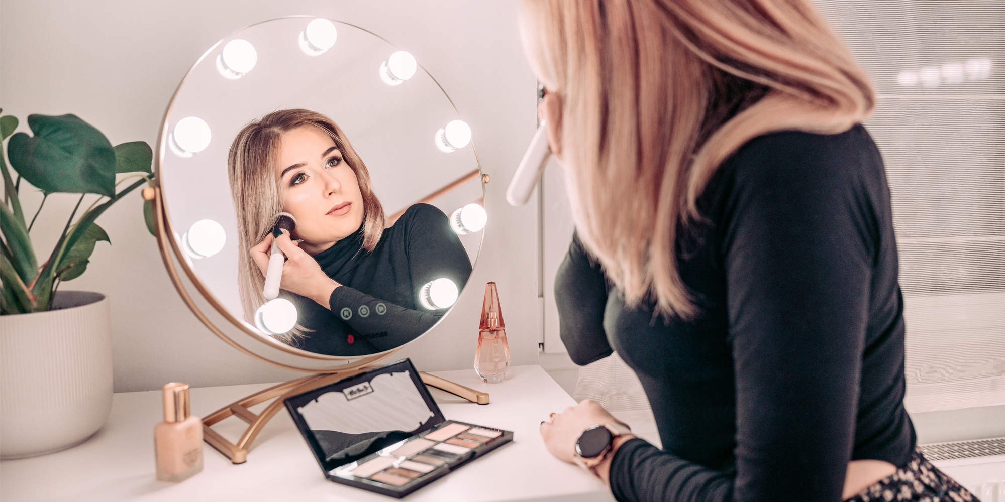 В зависимости от времени суток и существующих условий освещения можно самостоятельно регулировать мощность 9 светодиодов, заключенных в молочные рассеиватели. Просто используйте сенсорную кнопку, незаметно встроенную в поверхность зеркала. Высокая интенсивность света хорошо работает в солнечный день, а более низкая интенсивность света является идеальным решением для макияжа, сделанного после наступления темноты или в темной комнате. Идеально сбалансированный свет не режет глаза, что значительно облегчает работу над макияжем или макияжем.