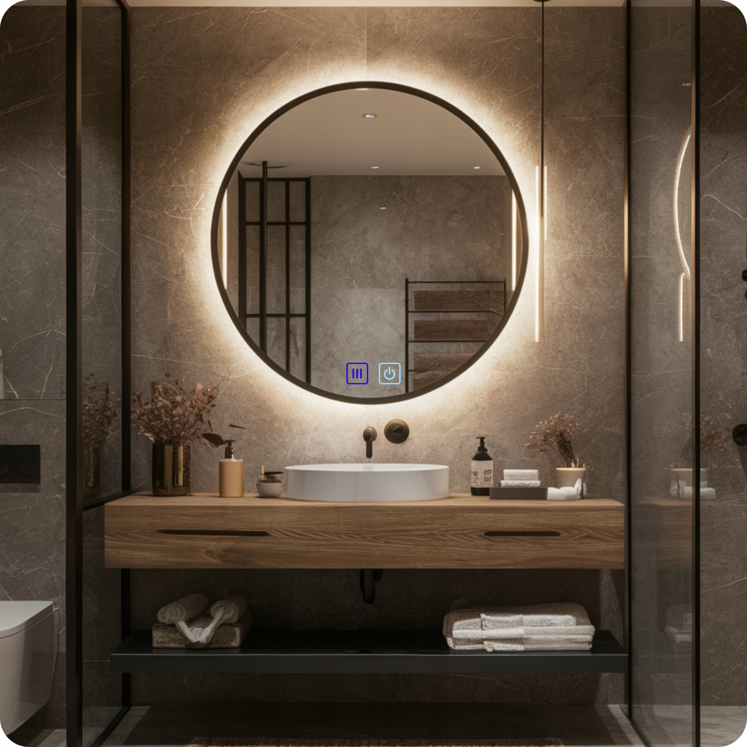 Сенсорные кнопки в светодиодном зеркале — комфорт и современность в одном.