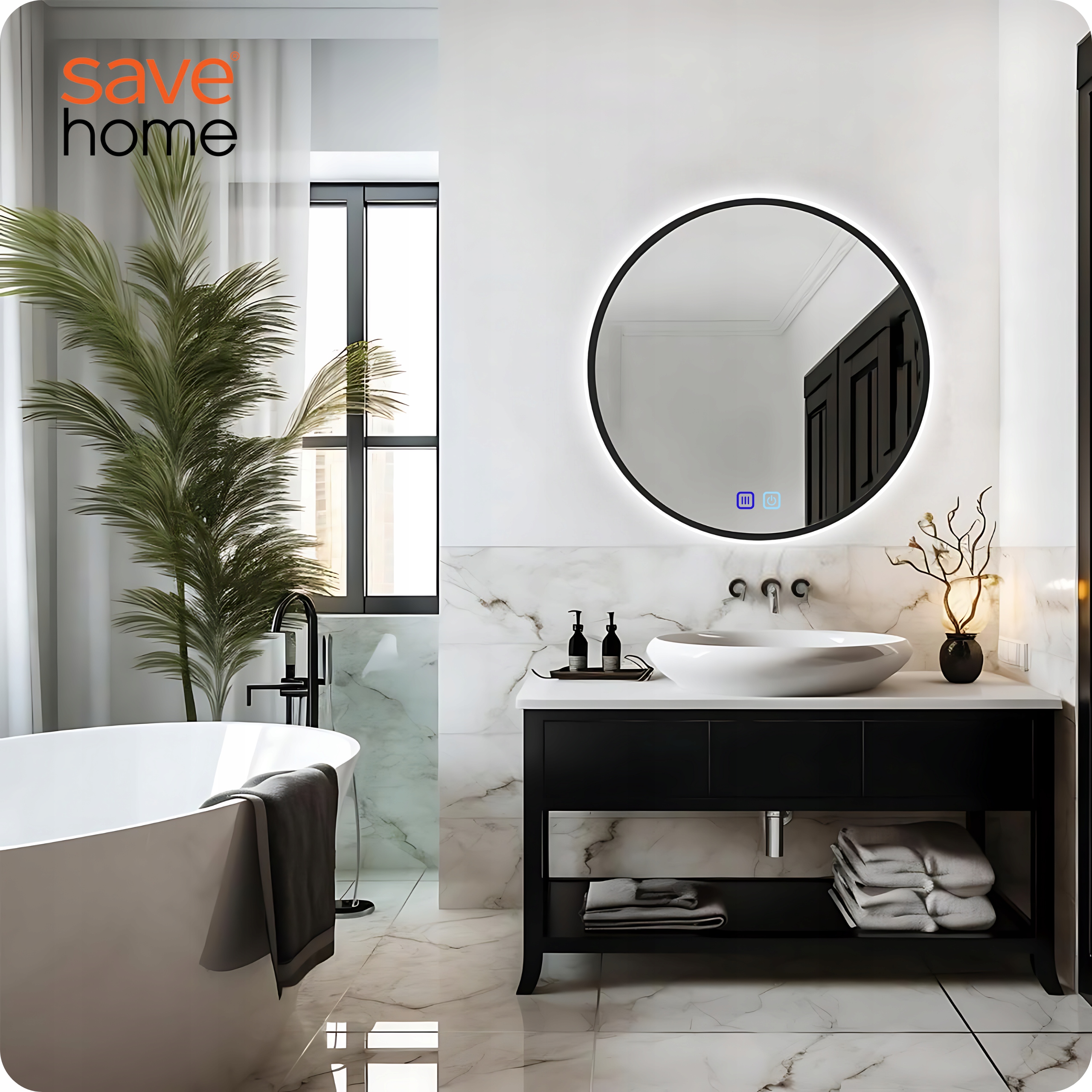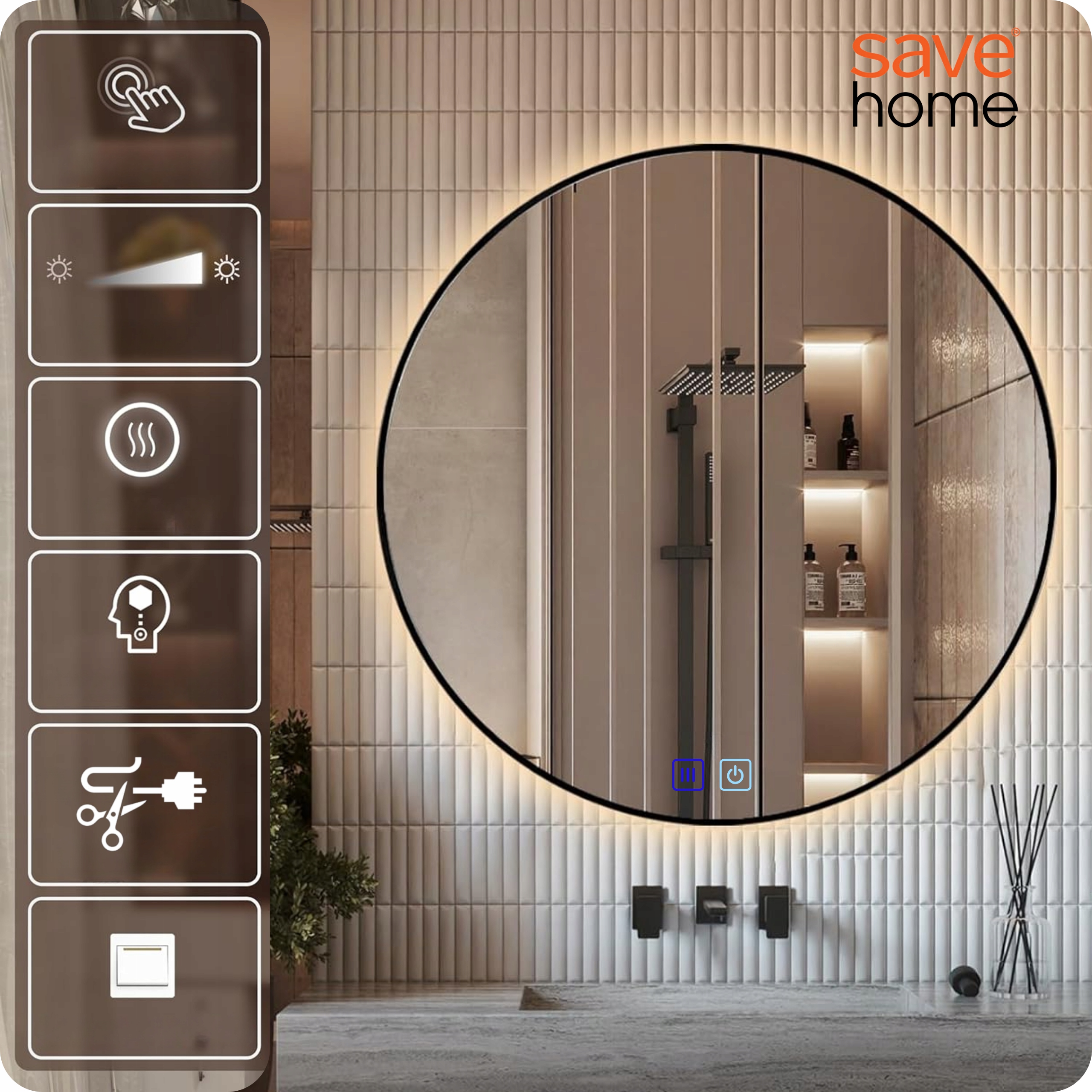 Круглое светодиодное зеркало от SAVE ®HOME в черной матовой рамке – это не только практичный элемент оборудования, но и чрезвычайно стильный акцент, который может полностью преобразить характер вашего интерьера.
