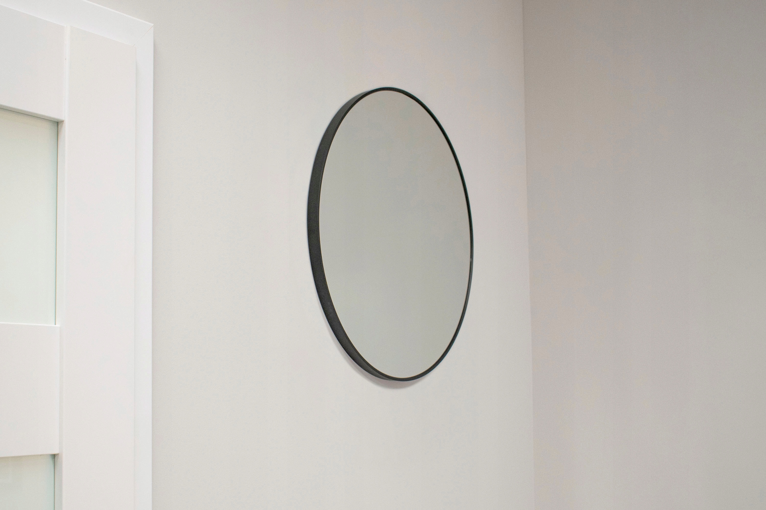 Рамка изготовлена из алюминия и покрыта черной порошковой краской. Раму зеркала легко содержать в чистоте — достаточно протереть ее влажной тряпкой.