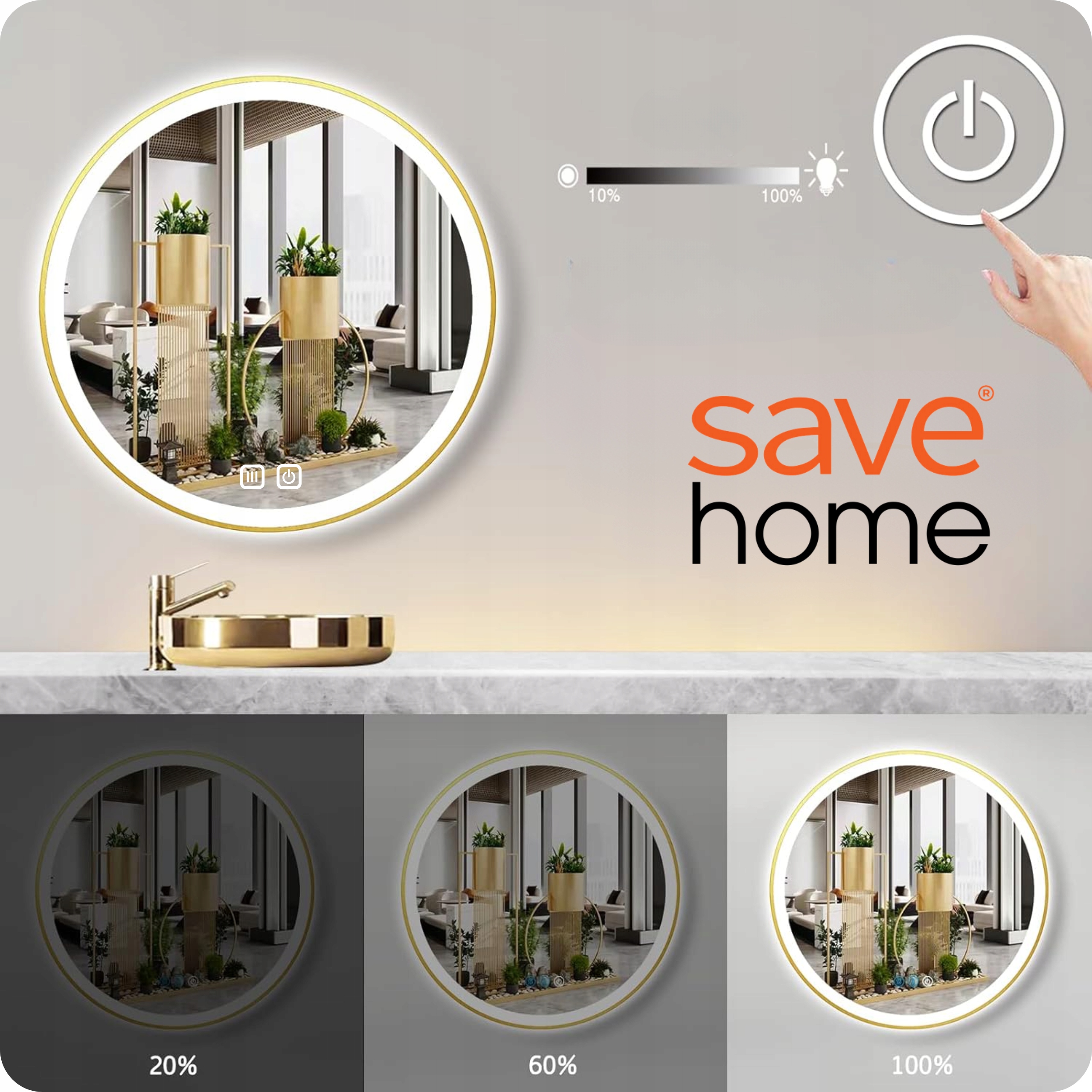 lustro marki save ® home posiada funkcję anti Rozwiązanie, które elminuje Проблема Zaparowywania powierzchni lustra w łaziness. Благодаря специальным технологиям зеркало всегда остается прозрачным, даже в условиях высокой влажности, например, во время или после горячей ванны или душа.