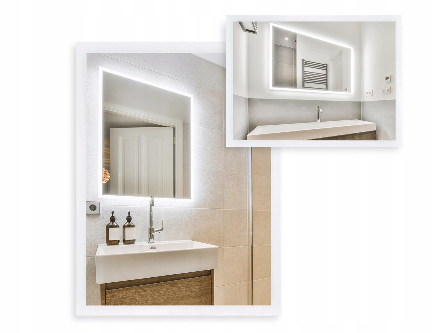ДЗЕРКАЛО ДЛЯ ВАННОЇ ПРЯМОКУТНЕ З ПІДСВІЧУВАННЯМ LED 60x80см | ПІСКОСТРУЙНА РАМА