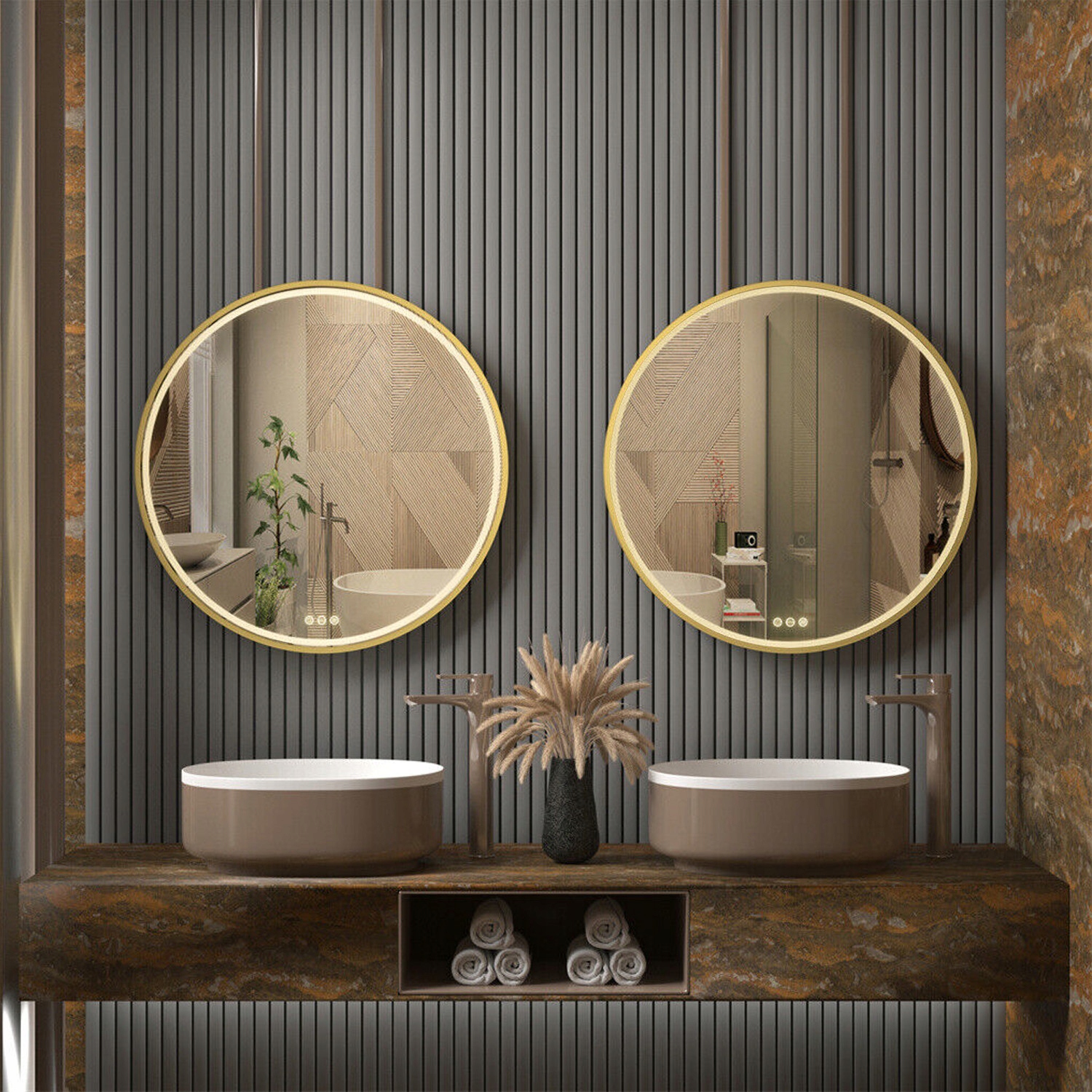 ДЗЕРКАЛО ДЛЯ ВАННОЇ В ЗОЛОТІЙ РАМІ СВІТЛОДІОДНЕ СВІТЛО КРУГЛЕ 60см