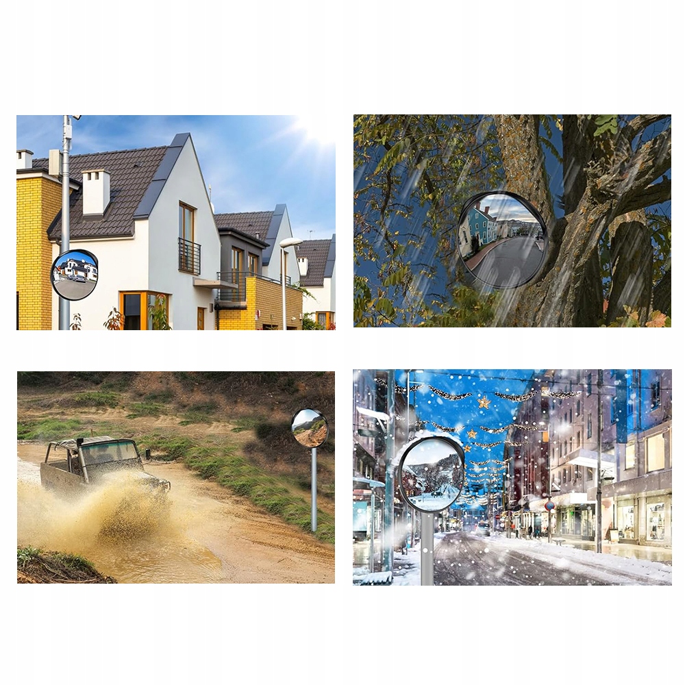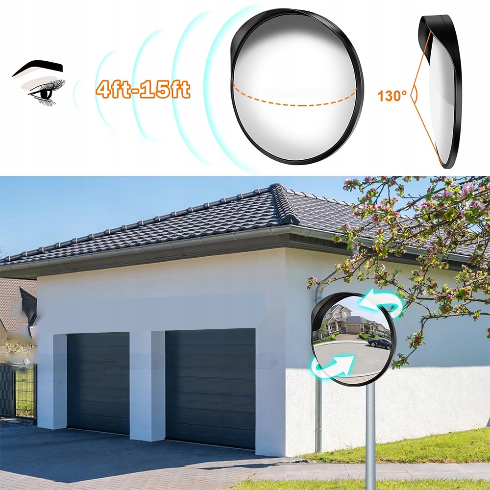 Изогнутое на 130° дорожное зеркало позволяет легко видеть слепые зоны, безопасно перемещаясь по опасным поворотам, подъездным дорогам, гаражам и зонам с ограниченной видимостью.