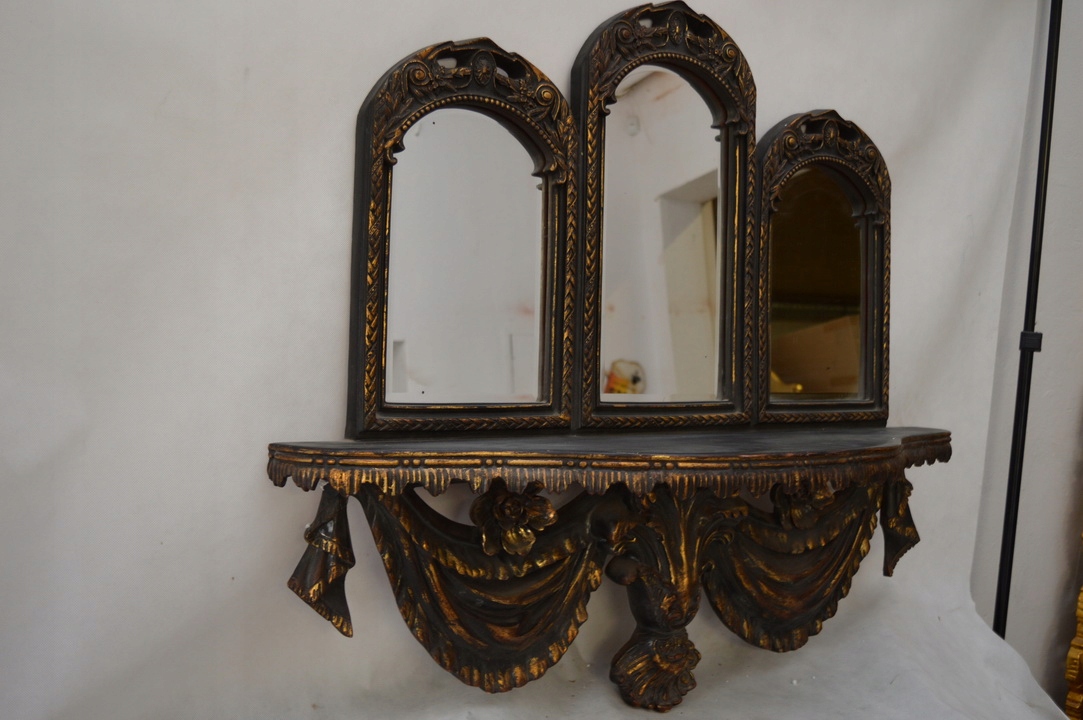 ДЗЕРКАЛО КОРИЧНЕВЕ ЧОРНЕ ЗОЛОТО - 3 ПАНЕЛІ + КОНСОЛЬ