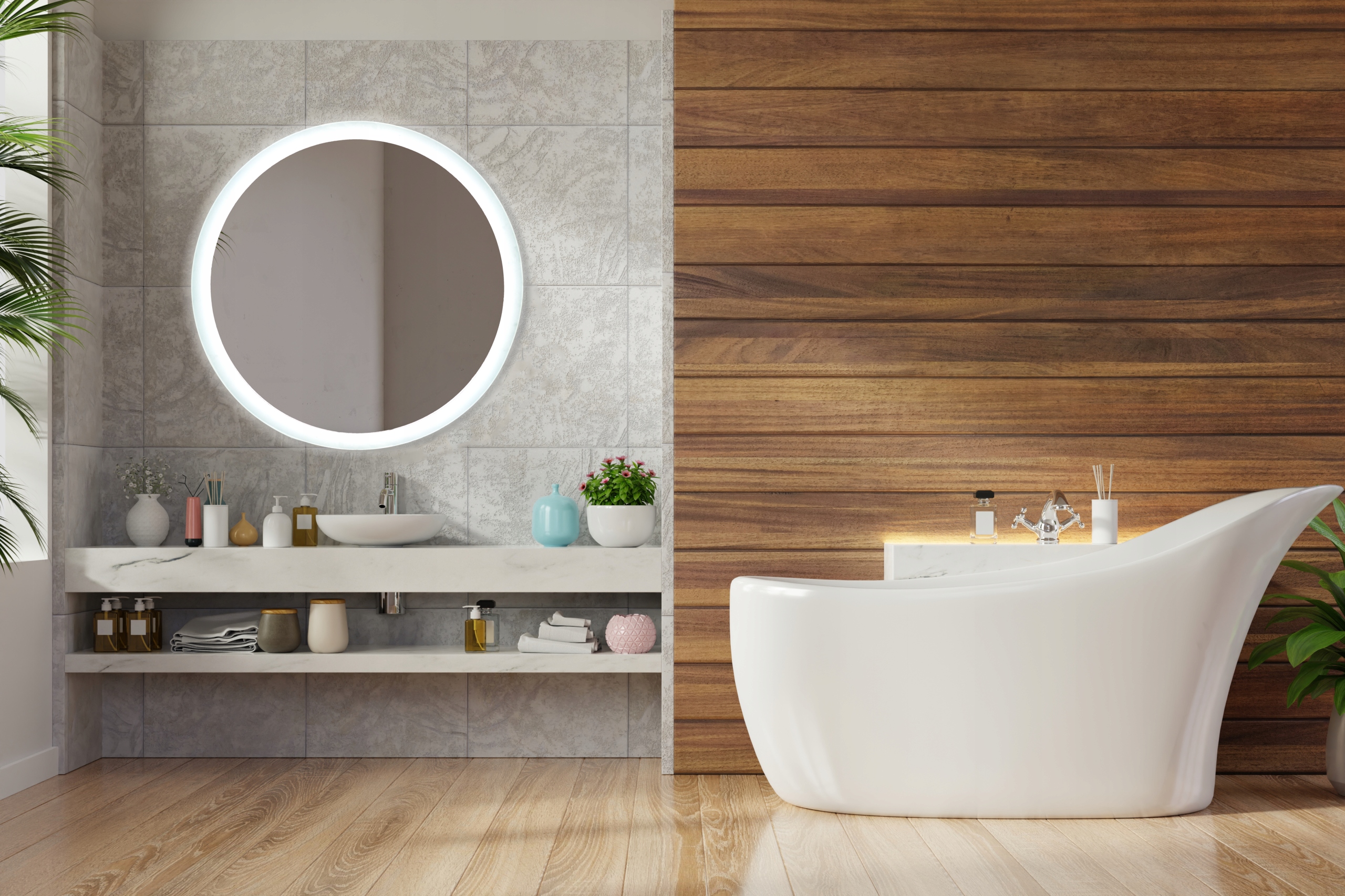 КРУГЛОЕ ЗЕРКАЛО ДЛЯ ВАННОЙ, СО СВЕТОДИОДНОЙ ПОДСВЕТКОЙ, 3 ЦВЕТА, Кольцо диаметром 60 см.