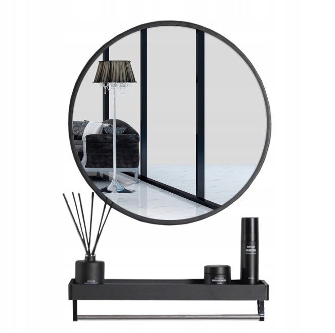 КРУГЛОЕ ЗЕРКАЛО С ПОЛКОЙ И ДЕРЖАТЕЛЕМ ДЛЯ ПОЛОТЕНЦА