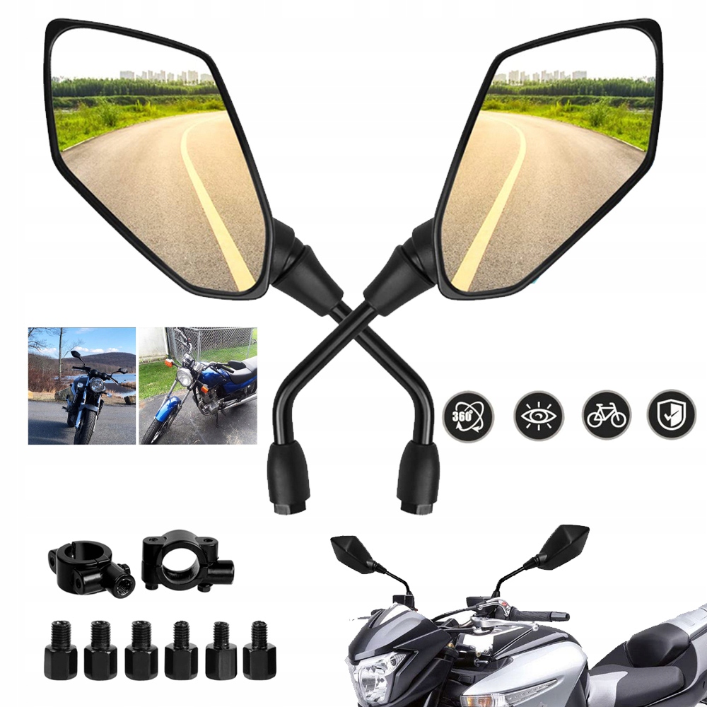 ☑ 【【Широкая совместимость】 Рулевое зеркало подходит для большинства мотоциклов, вне -транспортных средств, уличных велосипедов, транспортных средств с дороги, велосипедов и скутеров BMX и т. Д. Вы также можете установить их на велосипеде и легко установить.