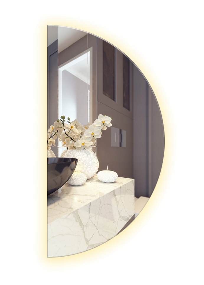 ПОЛУКРУГЛОЕ СВЕТОДИОДНОЕ ЗЕРКАЛО 100х50 СМ С ШЛИФОВАНИЕМ БЕЗ РАМКИ