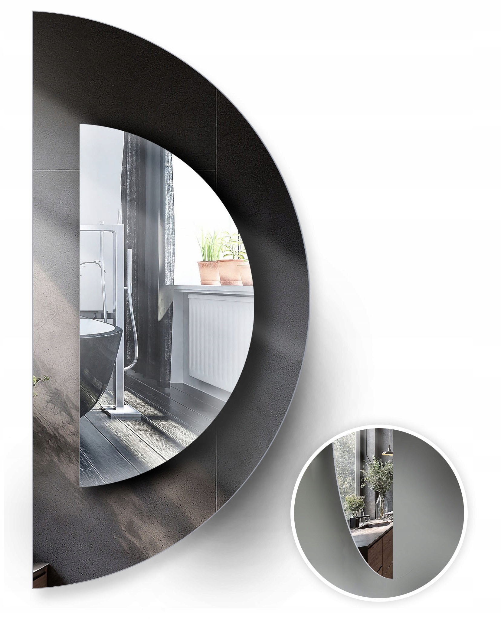 ЗЕРКАЛО ПОЛУКРУГЛОЕ СО ОБРЕЗАННЫМИ БОКАМИ, CLASSIC БЕЗРАМКИ FI, ДИАМЕТР 90 СМ