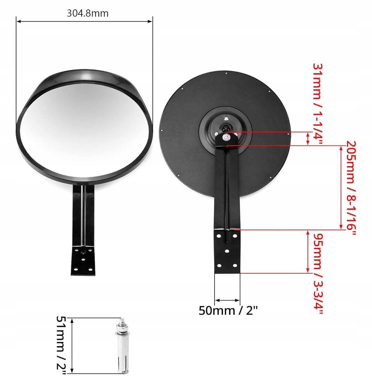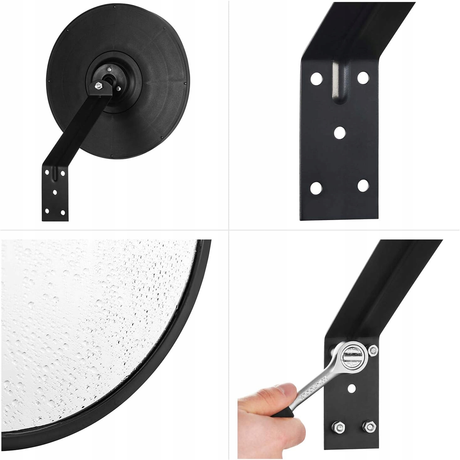 Вращение с твердой металлической ручкой для монтажа на стене: заднее Часть дорожного зеркала оснащена вращающимся шаровым соединением, который помогает установить зеркало под желаемым углом. Оснащен твердым Это дорожное зеркало может выжить в металлической настенной держателе. шторм без ослабления и не теряя установленного угла обзора, несмотря на самый сильный ветер.