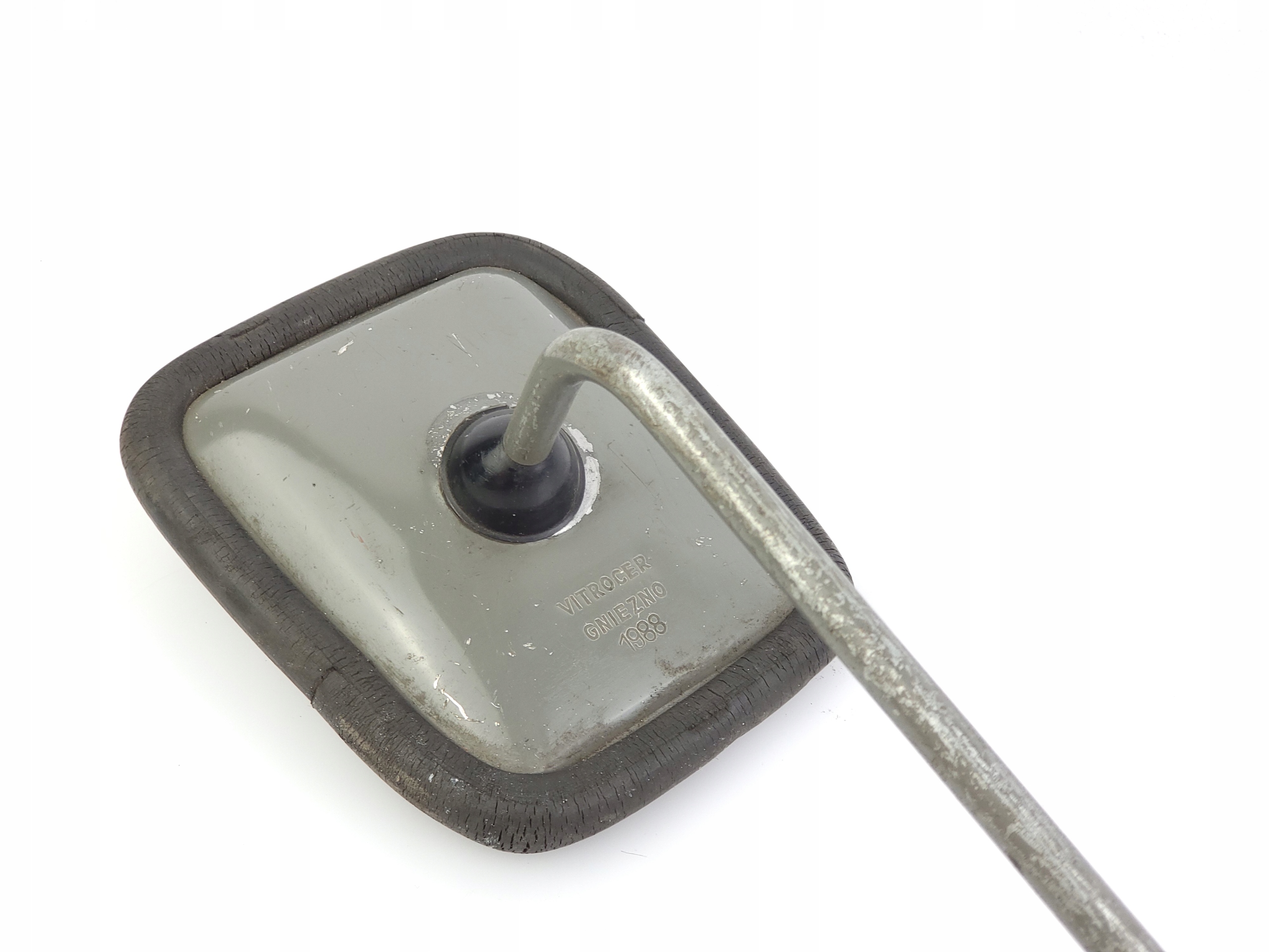 Предлагаем зеркало Vitrocer Gniezno 1988 года для велосипедов Romet Wigry Zenit и т. д. Зеркало имеет многочисленные пятна и расслоения.