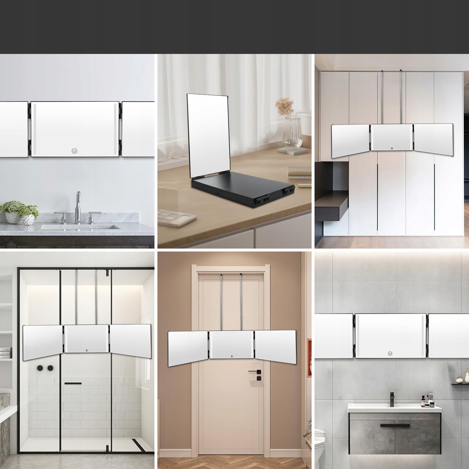 с высотой, регулируемой в отверстия для подвешивания на двери, стен, ванных комнатах, шкафах или столах. Он адаптируется к различным сценариям и предлагает идеальную высоту для ваших нужд. Наше зеркало на 360 градусов имеет структуру складывания, которая легко вписывается в вашу сумку или багаж. Идеально подходит для путешествий или на работе.