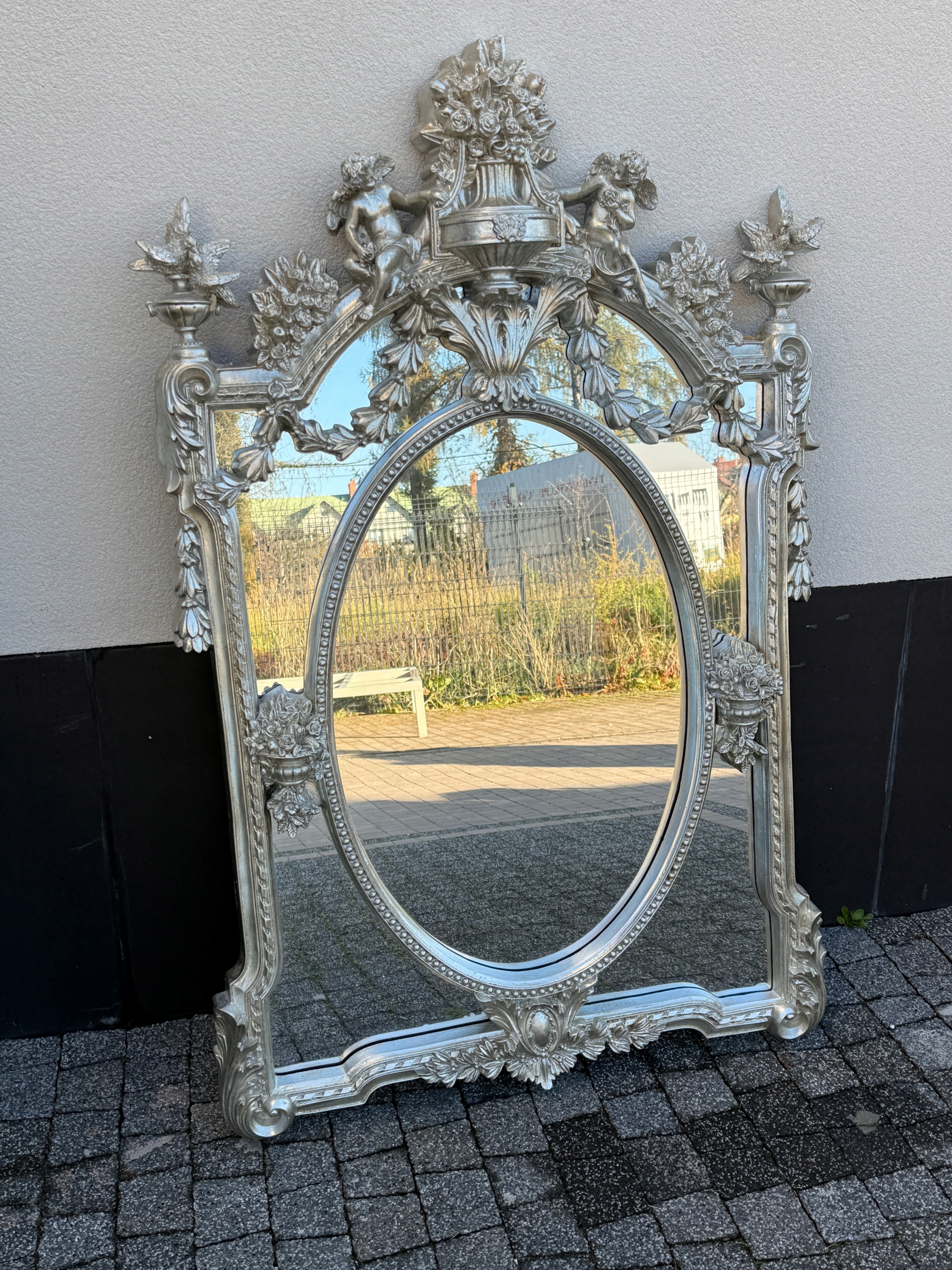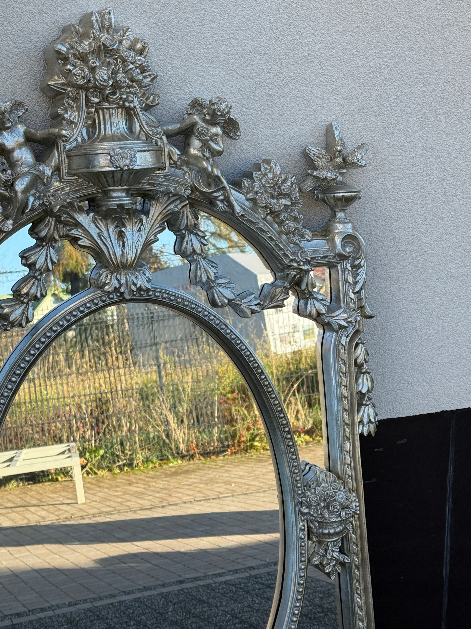 Зеркало с ангелочками и серебряными птицами.