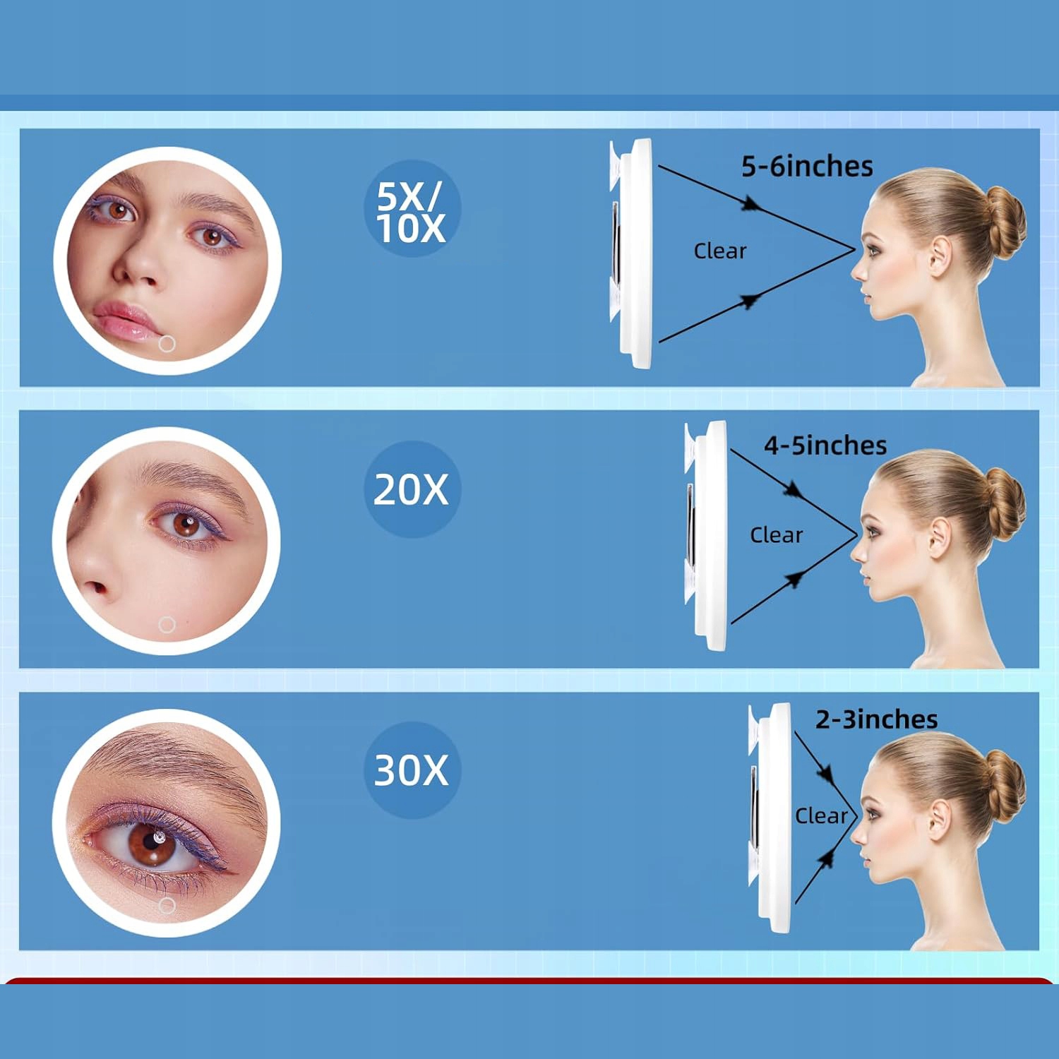 💄💄【Важные примечания】 Если вы новичок в использовании луп, пожалуйста, прочтите следующую информацию перед покупкой. Лупа 20-кратная представляет собой вогнутую линзу. Чтобы избежать искажения или инверсии изображения, расположите лицо очень близко к зеркалу и сфокусируйтесь на его центре. Поэтому он не подходит людям, которые хотят видеть все лицо при нанесении макияжа!