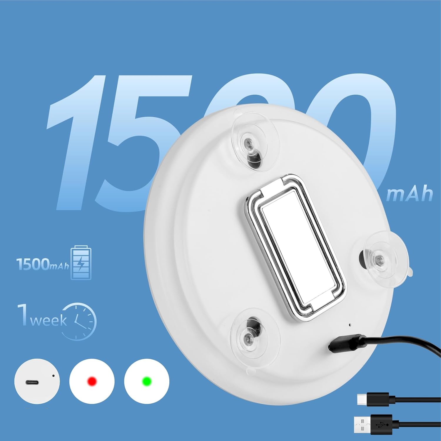 💄💄【Косметическое зеркало с аккумулятором】 Косметическое зеркало с 20-кратным увеличением оснащено аккумулятором емкостью 1500 мАч, которого при полной зарядке хватает на неделю использования. Зарядка осуществляется через разъем USB, совместимый с разъемами USB Type-C на ноутбуках, зарядных устройствах или блоках питания, что исключает необходимость замены батарей.