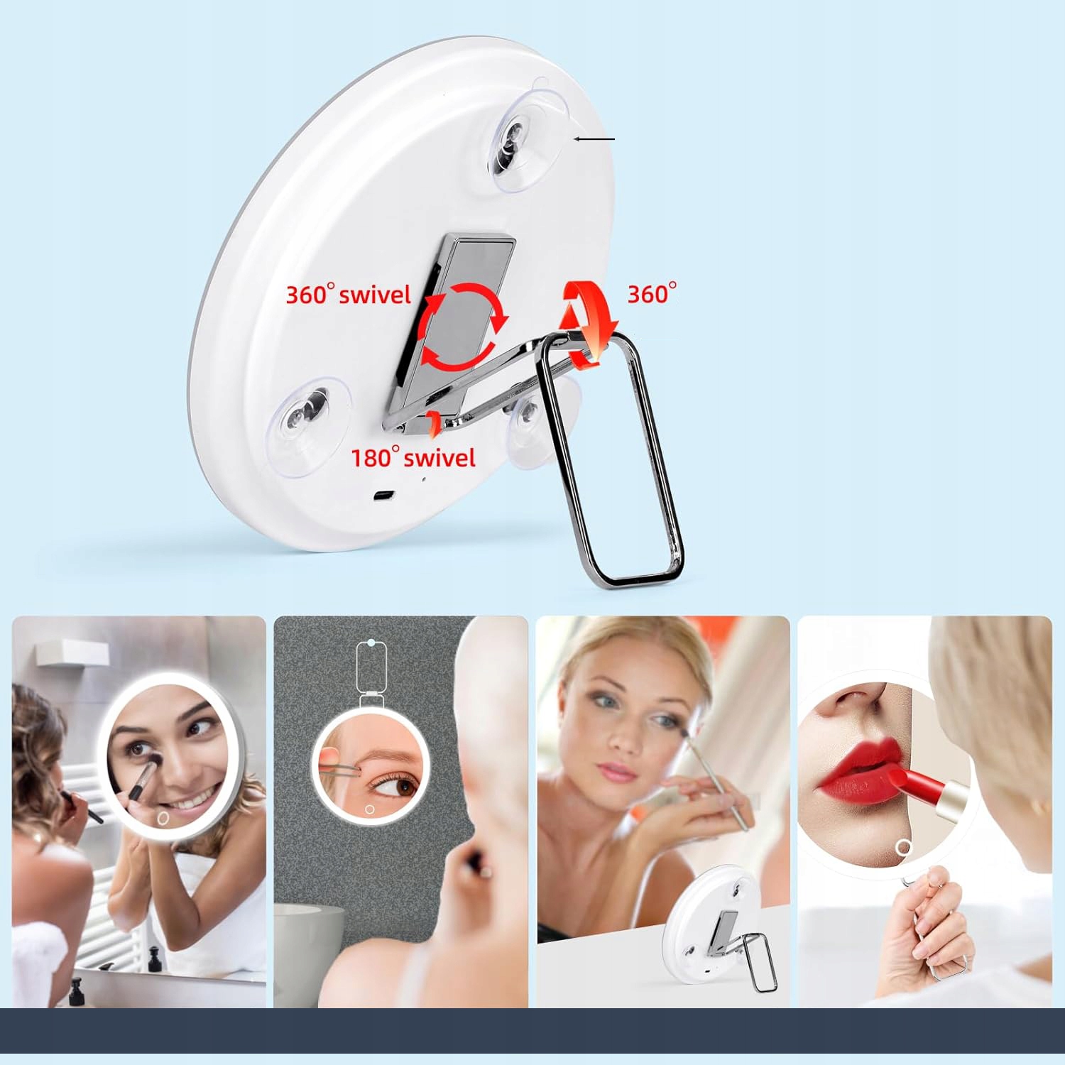 💄💄【Регулируемая подставка и присоски】 Оснащено гибкой складной ручкой. Увеличительное стекло можно повесить на стену или поставить на стол благодаря регулируемой подставке, поэтому его можно использовать как ручное, настольное или настенное зеркало. Три прочных присоски надежно крепят лупу к любой гладкой, чистой и плоской поверхности.