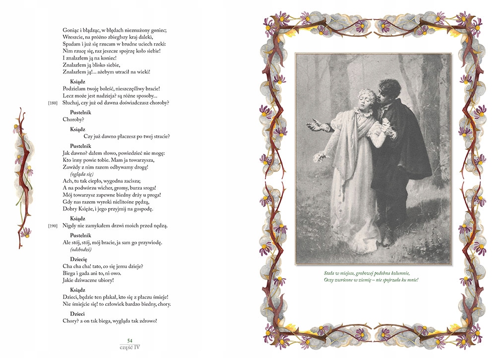 Уникальное издание Национального эпопа pan tadeusz было обогащено уникальными иллюстрациями Михала Элвиро Андриол, из 1882 года. Эти иллюстрации, отражающие дух эпохи, идеально представлены идиллическим очарованием усоздавателя Soplician, демонстрируют непробная герои и замечательные природы. Адам Мицевич введен в To Pan Tadeusz Сумерки Польши. Он представил своих героев сочувствие, показывая польские традиции и обычаи, красоту его родной природы.