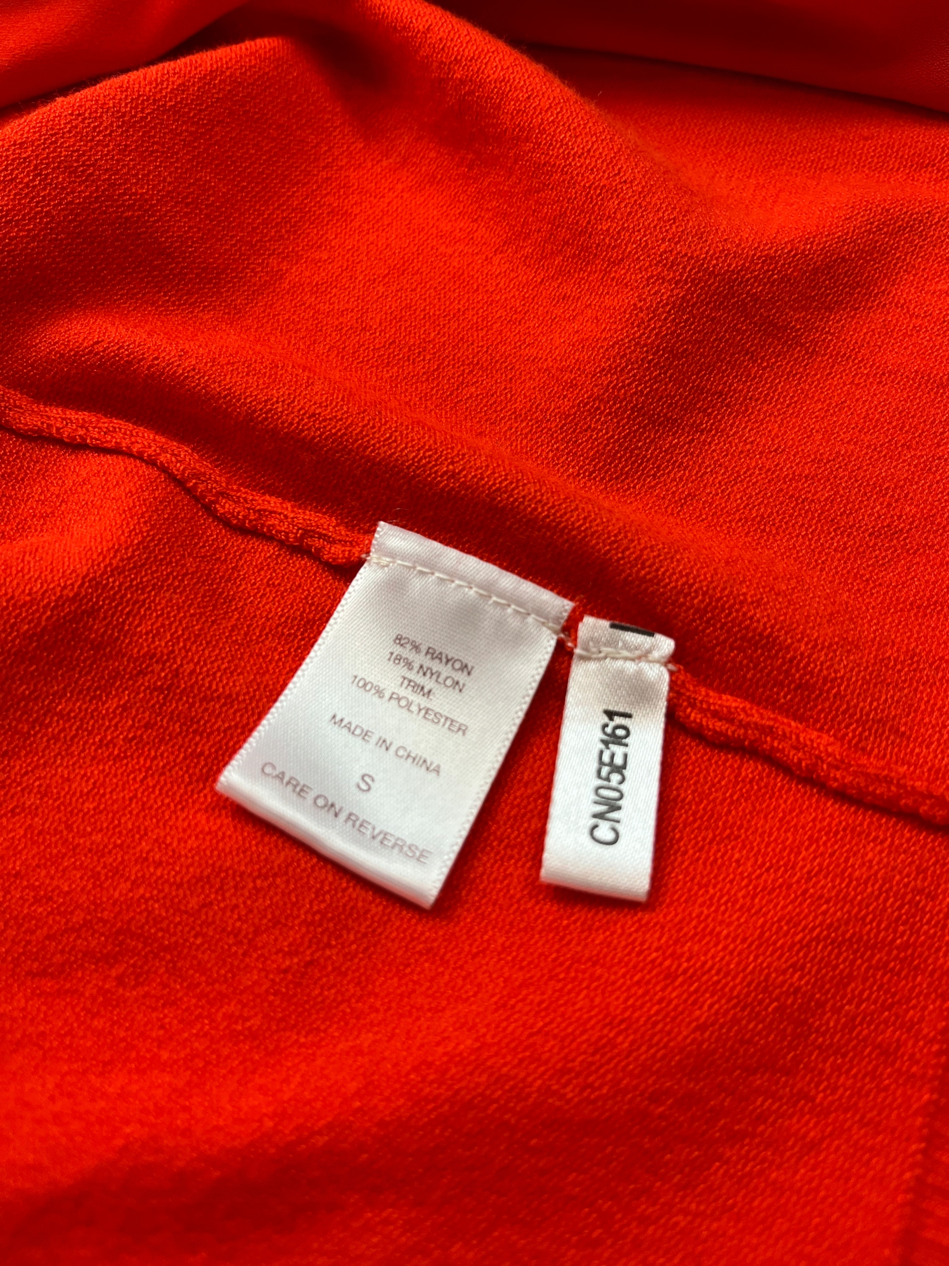 Короткое оранжевое болеро. Простая форма с рукавами 3/4 и завязкой на шее прекрасно подойдет ко многим стилям. И вечером, и каждый день. Изготовлен из 82% вискозы, называемой синтетическим шелком, что делает его невероятно нежным! Он невероятно бархатистый и нежный на ощупь. У болеро есть небольшая утяжка сзади, но на наш взгляд она видна только изнутри (показано на фото).