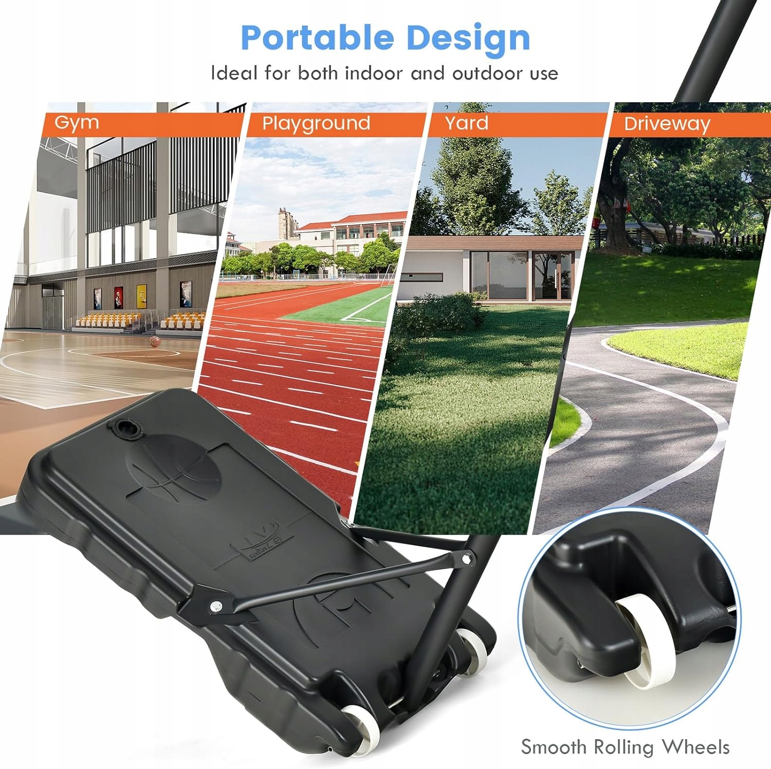 Оснащена 2 легко передвижными тележками, благодаря которым корзину можно легко перемещать, поэтому ее можно использовать как в помещении, так и на открытом воздухе. Его можно разместить у подъезда, в саду, на детской площадке, в фитнес-студии и т. д.