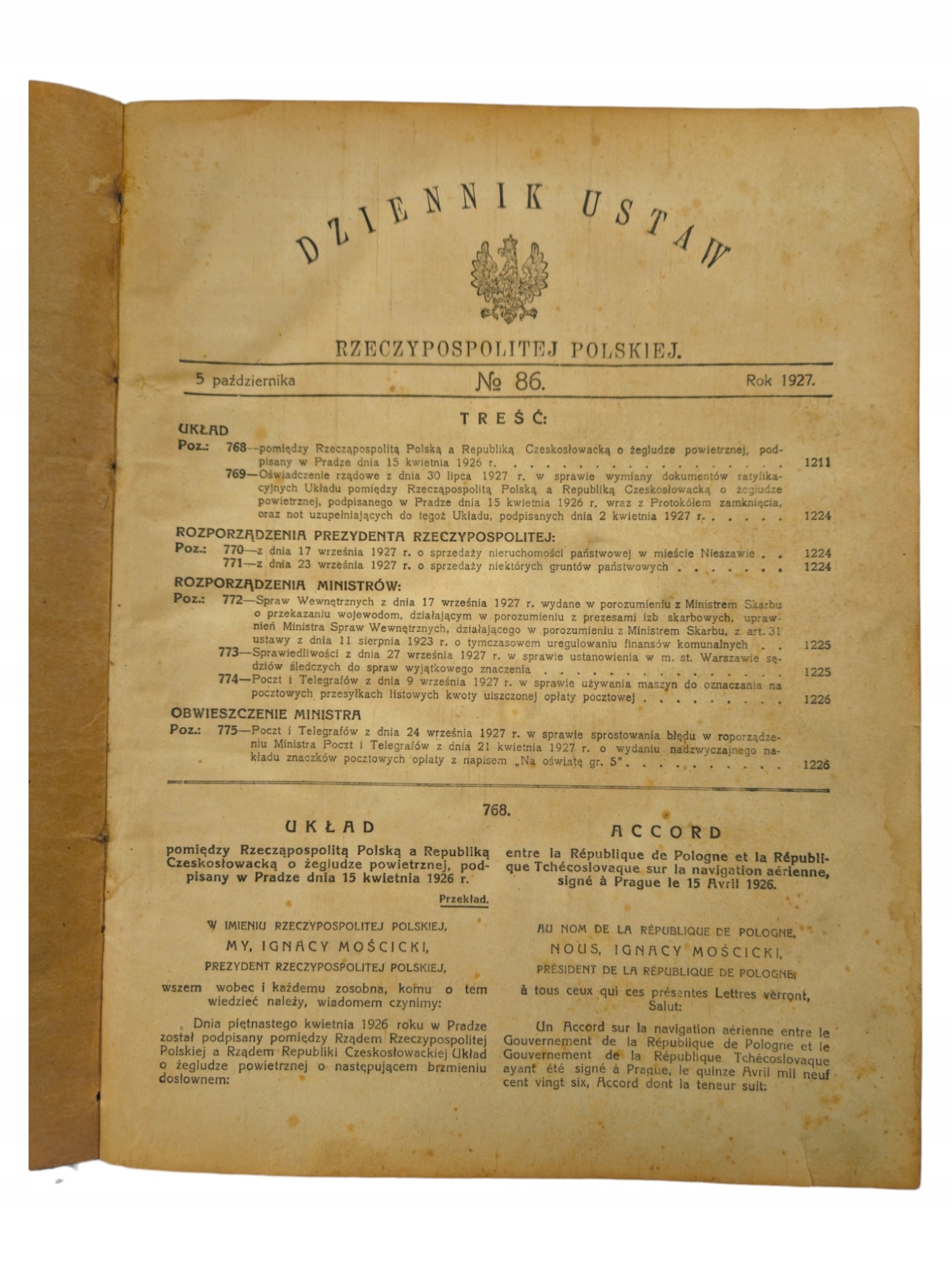 Журнал законов Республики Польша № 86 года 1927 года Twarda