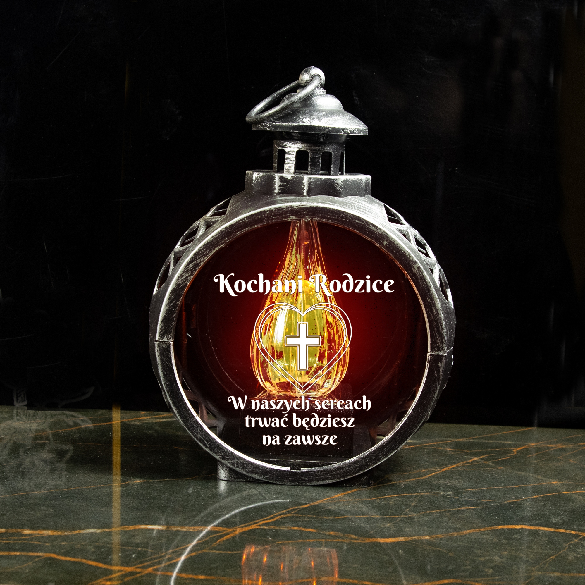 EVENTERAL ГРАВИЙНЫЙ ФОНАРЬ ДЛЯ РОДИТЕЛЕЙ, СЕРЕБРЯНЫЙ С ПЛАМЯЮ И ГРАВИРОВКОЙ