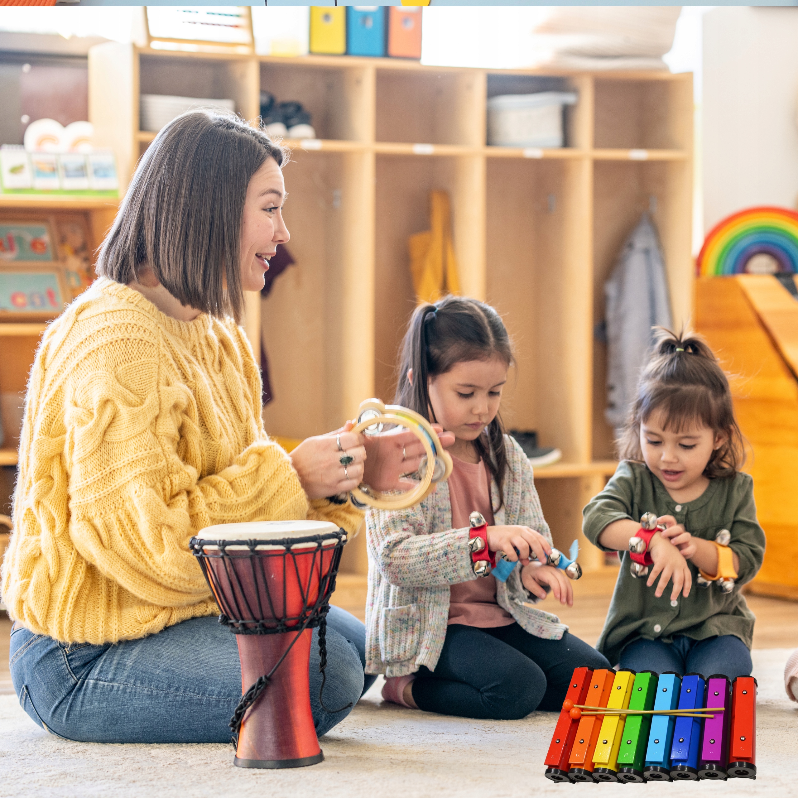 Колокола изготовлены из долговечного алюминия и пластика ABS, благодаря тому, что они устойчивы к интенсивному использованию - они великолепны даже в дошкольных группах. Желто-оранжевые палочки являются легкими и эргономичными, а фиолетовый покров синтетической ткани защищает весь набор и облегчает его перенос.