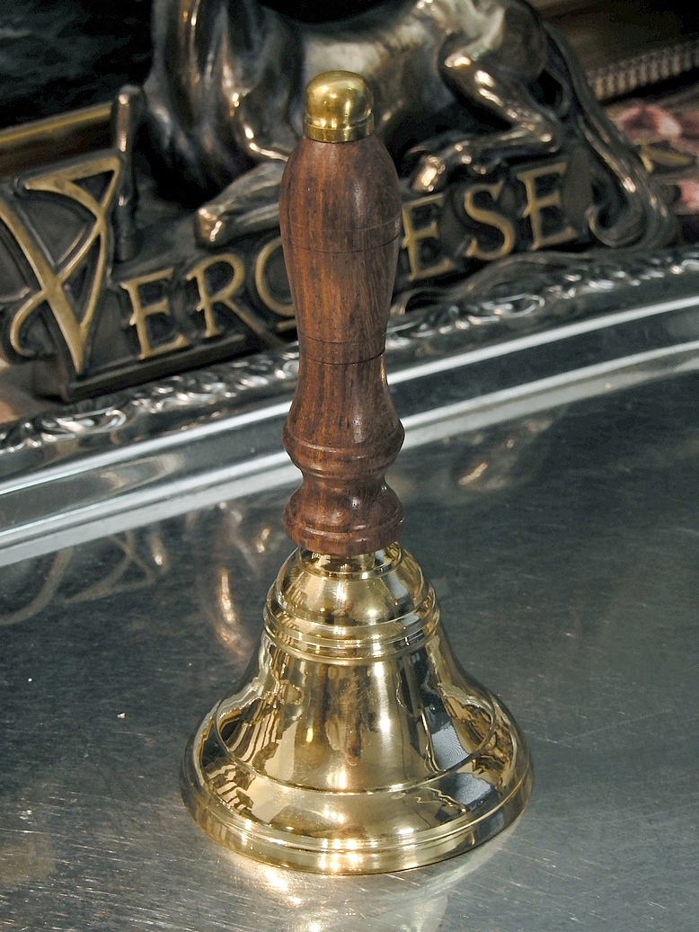 Приглашаю Вас приобрести красивый колокольчик с деревянной (палисандровой) ручкой. Изготовлен из латуни. Звонок звонит на удивление красиво, чисто и громко, хоть и небольшой. это связано с толщиной стенок.