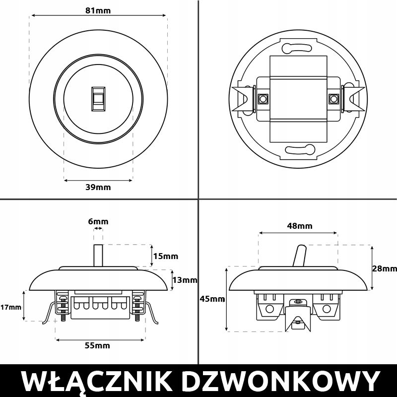 КНОПКА ЗВОНКА ЛОФТ РЕТРО БЕЛАЯ JLM БЕЗ РАМКИ