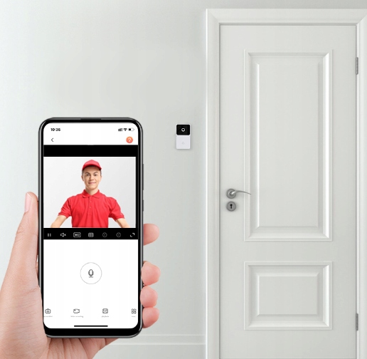 - Уведомления на смартфоне и двусторонняя аудиосвязь Когда кто-то нажимает на дверной звонок, он мгновенно захватывает изображения и мгновенно отправляет уведомление на ваш смартфон; благодаря встроенному микрофону вы можете видеть своих гостей и разговаривать с ними где угодно и когда угодно.