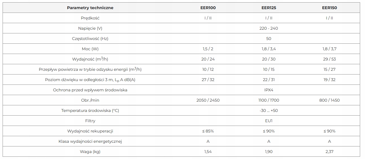 Recuperators E-Extra EER предназначены для постоянного воздушного воздуха в помещении. Устройство оснащено регенератором (керамический теплообменник), который хранит тепловую энергию от воздуха, покидающего комнату и нагревает свежий воздух, выходящий в комнату, что обеспечивает минимальные потери тепла. Устройство предназначено для непрерывной работы.