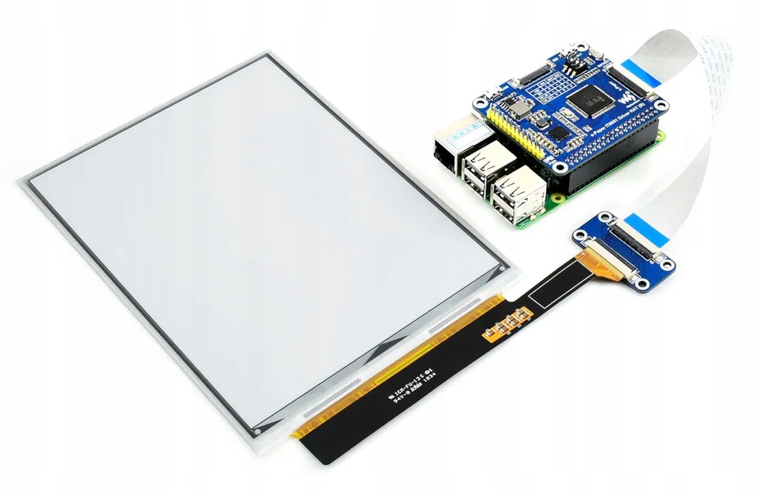 Дисплей Waveshare E-Ink, выполненный по технологии электронной бумаги, сдиагональю 7,8 дюйма и разрешением 1872 x 1404 px, может отображать два цвета: чёрный и белый. Поддерживает частичное обновление. Экран работает с Raspberry Pi с включенным в комплект экраном.