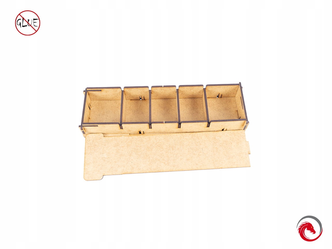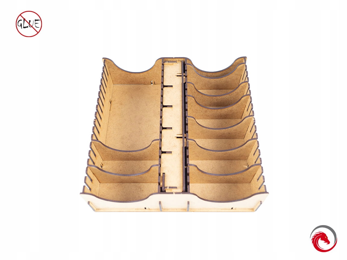 Вставка прочная и изготовлена из высококачественного HDF. Для сборки не требуется клей. Позволяет хранить все элементы внутри коробки.