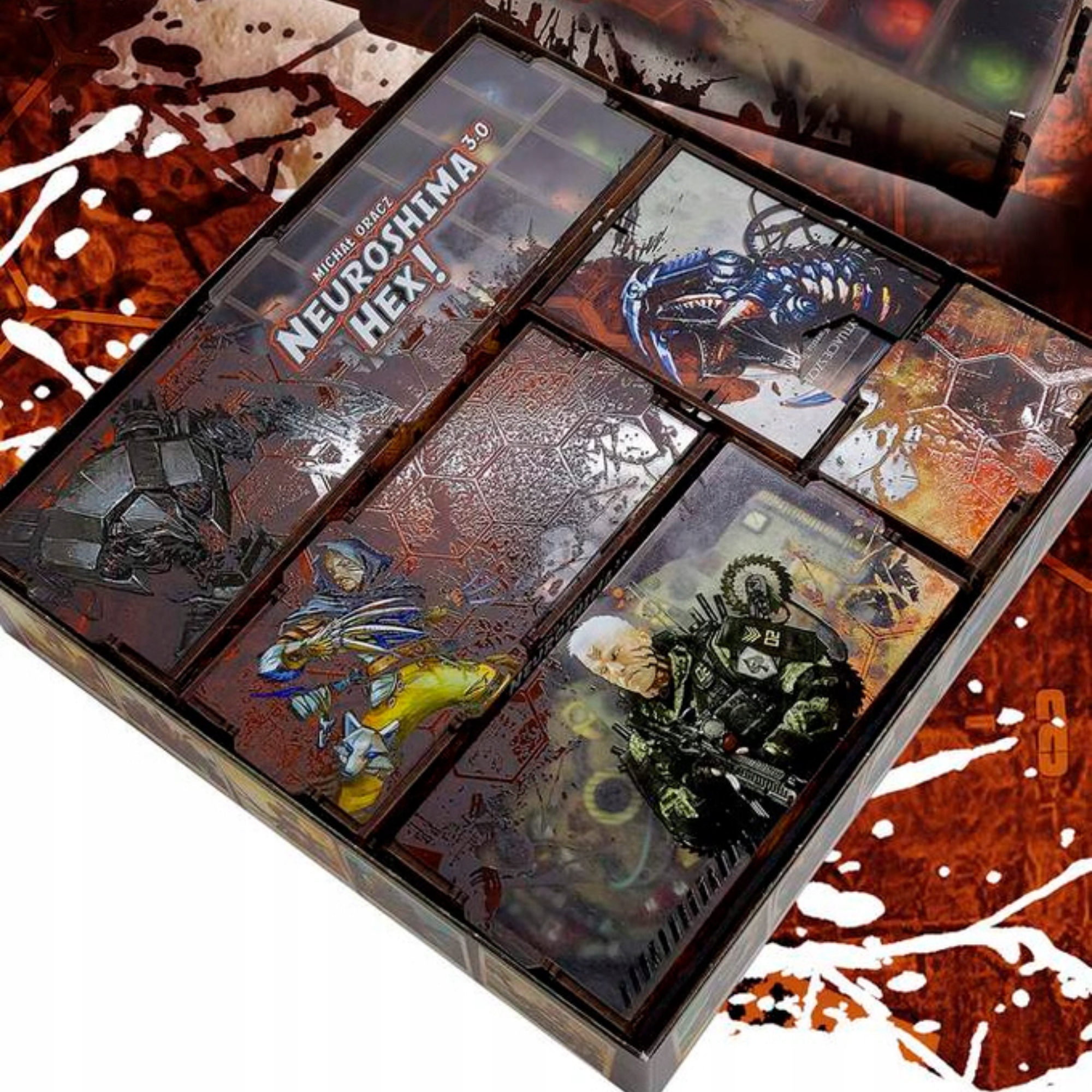 Вставка для Neuroshima Hex 3.0 была разработана таким образом, чтобы все фигуры и карты в обложках были идеально организованы, поэтому вы можете сосредоточиться на стратегии, а не на поиске фигур.