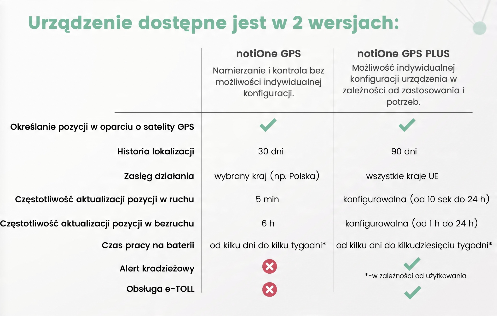 Предложение распространяется на устройство Notione GPS в версии PLUS. Если вас интересуют другие устройства Notione, мы приглашаем вас просмотреть другие наши предложения.