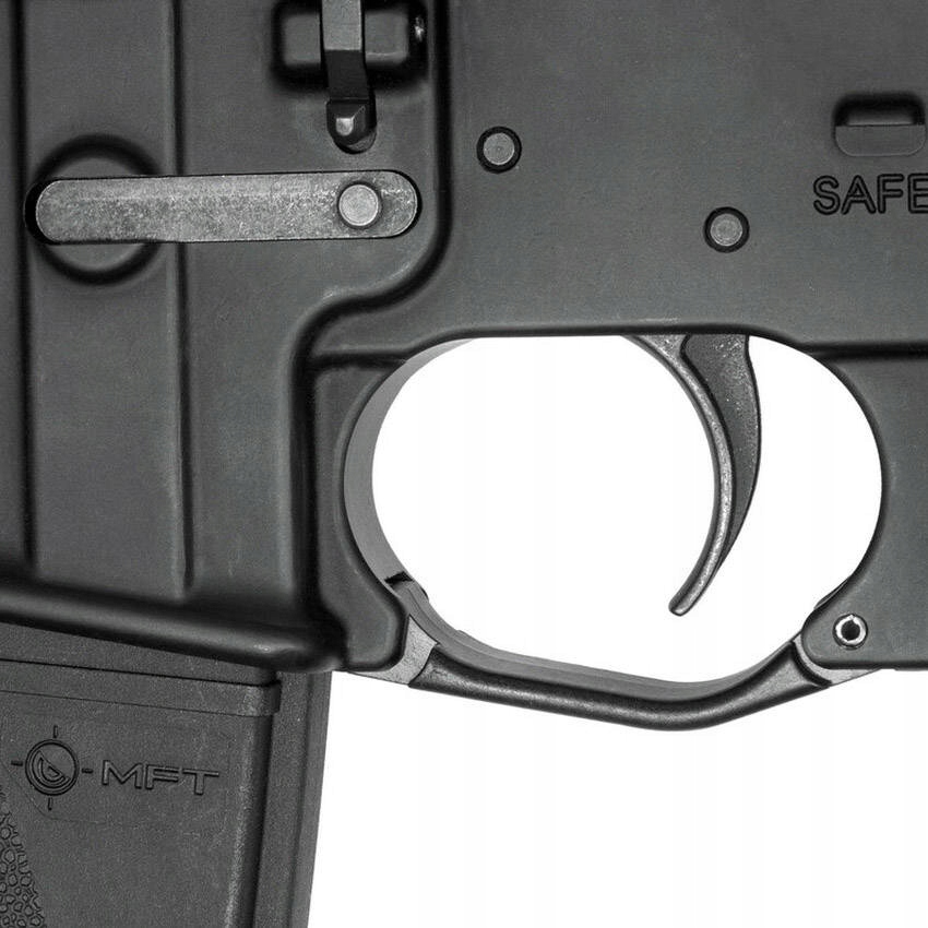 Увеличенная дужка E-VolV производства MFT. Он изготовлен из легкого, прочного полимера, устойчивого к ударам и царапинам. Он позволяет пальцу свободно перемещаться на спусковом крючке при использовании тактических или зимних перчаток. Кобура может использоваться со всеми винтовками AR-15.