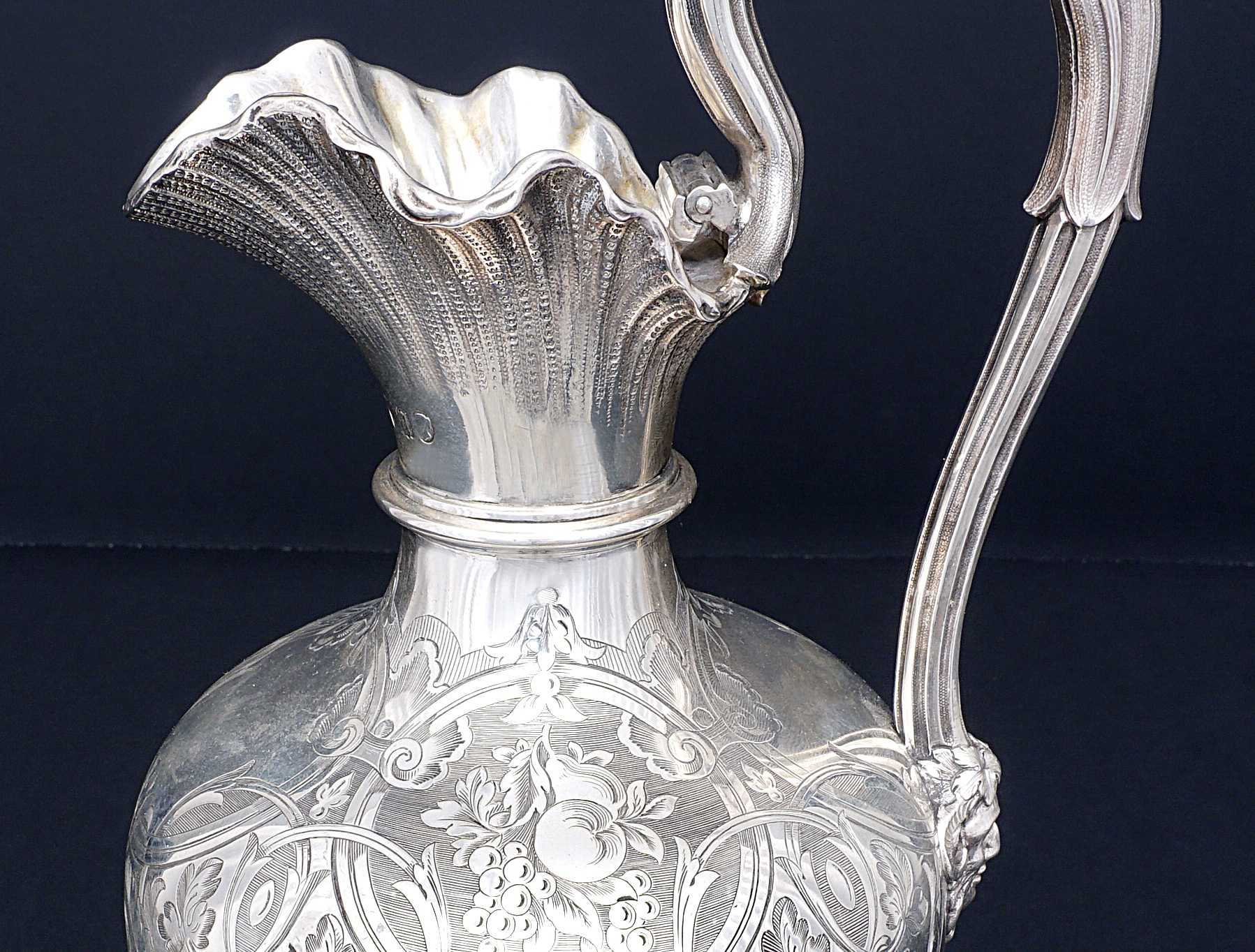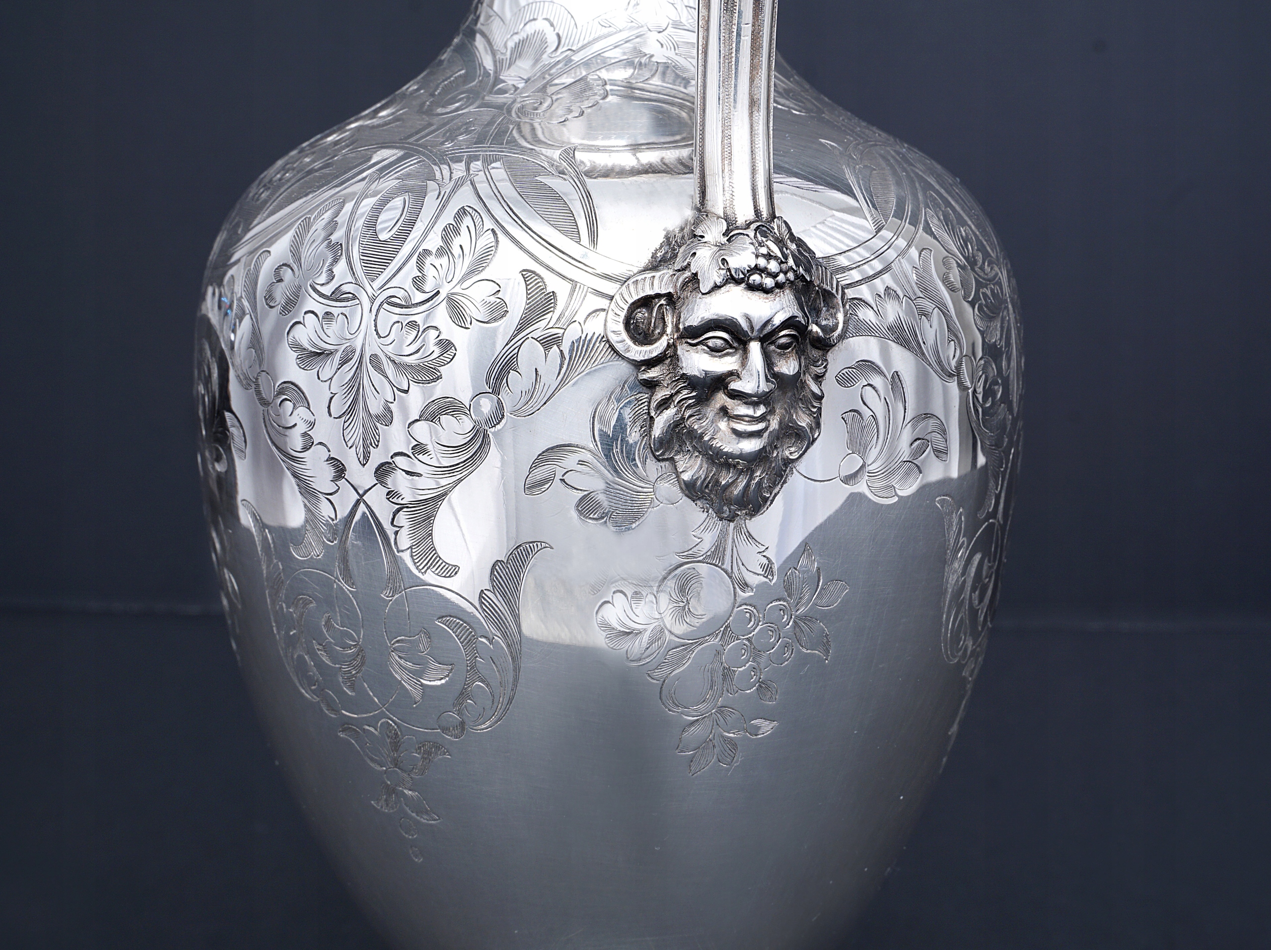 Викторианский резной винный кувшин из серебра 925/1000 пробы.