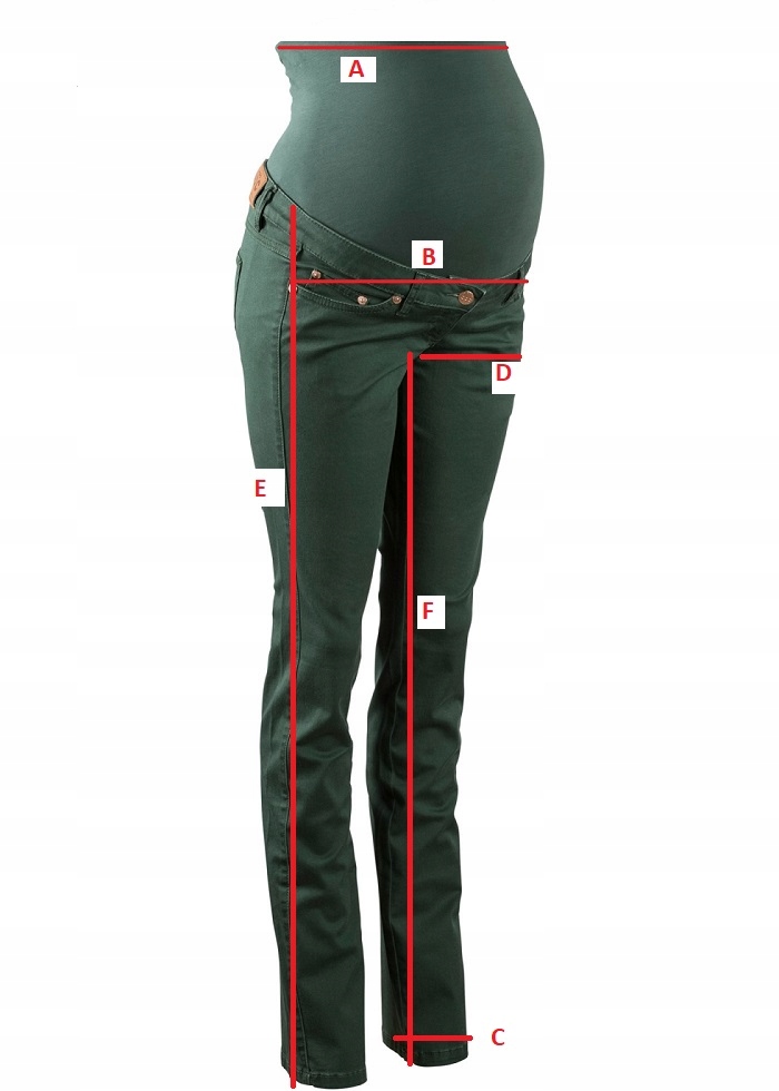 - размер E - общая длина от джинсового ремня /без ремня для беременных/ - около 102.