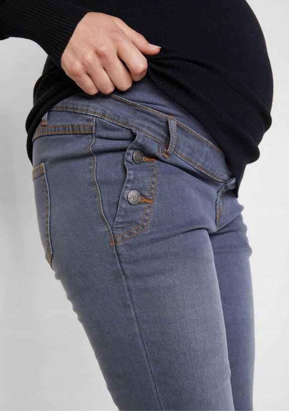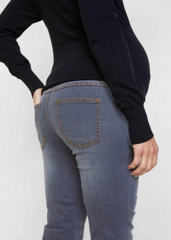 Брюки для беременных из коллекции Bon Prix серо-синего цвета - Как на фото под описанием, удобный крой, зауженная ножка. Брюки, заявленные производителем как ультрамягкие, с поясом для беременных.