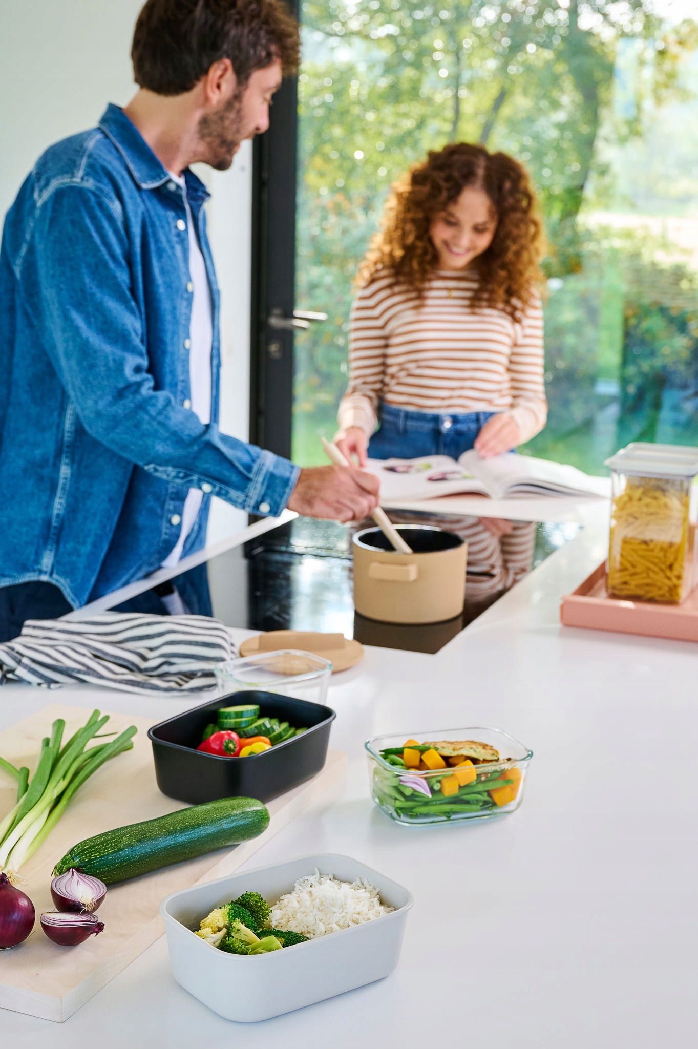 Хорошая организация пространства и поддержание заказа в кухонных шкафах, холодильнике или морозильной камере предоставит нам использование пищевых контейнеров. Для достижения этой цели выберите высококачественный, напряженный, эргономичный и безопасный продукт. Идеальный контейнер также должен быть простым в использовании, появляется во многих размерах, быть функциональным, и это эстетика, и это контейнер Mepal EasyClip. EasyClip отличается инновационной системой закрытия и открытия одним кликом. Контейнеры бывают разных размеров и цветов, поэтому вы можете составить любой набор, в соответствии с вашими предпочтениями и потребностями. Продукт может быть заряжен, что экономит пространство и вдумчиво для разработки места в шкафах, холодильнике, морозильной камере. Запечатанная, прозрачная крышка позволяет вам идентифицировать хранимые статьи без необходимости открывать его. Низкий вес, герметическое закрытие, которое гарантирует, что ничто не выйдет за рамки контейнера, сделайте его также использование в качестве ланч -бокса, транспорт пищевых продуктов прост и безопасен. Контейнеры EasyClip можно использовать в микроволновой печи b> даже с закрытой крышкой (2 минуты/ 600-750 Вт), просто поднимите зажим, чтобы водяной пара и воздух могли свободно выйти. Продукт был оснащен уникальным паровым клапаном. EasyClip можно использовать в паровой духовке (без крышки), в холодильнике, в морозильной камере и мытью в посудомоечной машине. Контейнеры были сделаны в Нидерландах, 100% переработанного пластика, полностью для здоровья - BPA -Free, имеют контакт с едой. уборки и поддержание Заказ на нашей кухне организует место в холодильнике и морозильной камере, облегчит транспортировку продуктов питания и термообработку, приготовит еду и потребление дома или снаружи, будет для нас чистым удовольствием. Easy Clip-это современное, интеллектуальное и инновационное решение, которое будет работать на каждой кухне. Второй