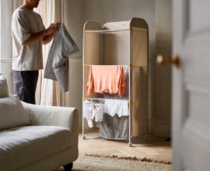 - 3 стальных уровня можно сложить, чтобы адаптировать конструкцию сушилки к типу белья, например, длинным полотенцам,