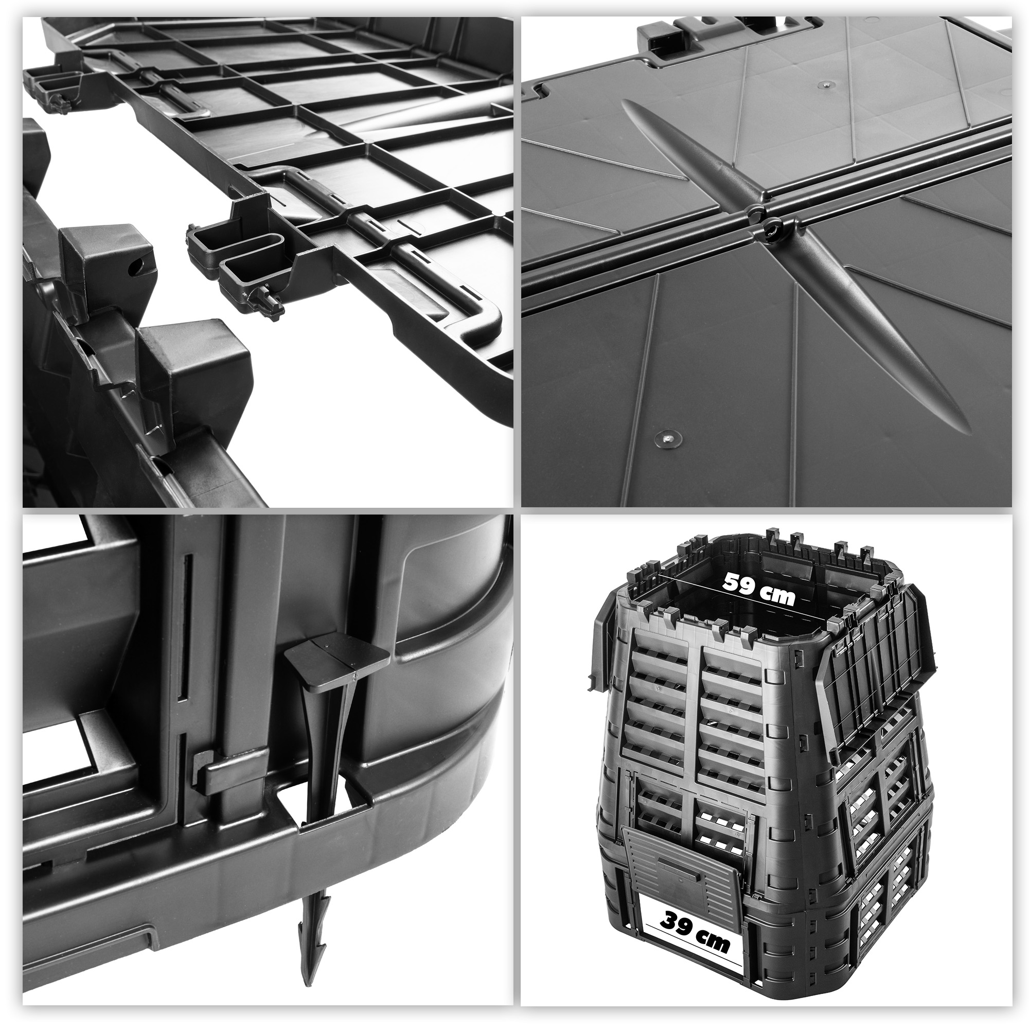 Компостер изготовлен из переработанных материалов b>, подходит для повторной обработки. Это не только экологические, но и , устойчивые к неблагоприятным погодным условиям , температурные различия, мороз или интенсивные дожди