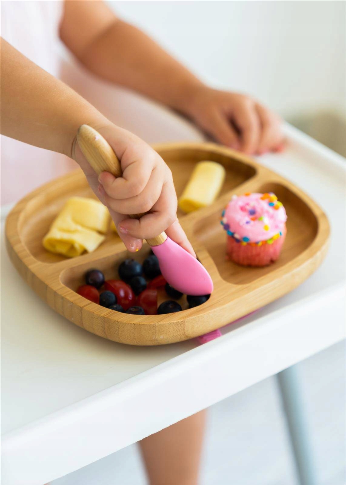 ECO RASCALS Бамбуковая миска/тарелка из трех частей с розовой присоской